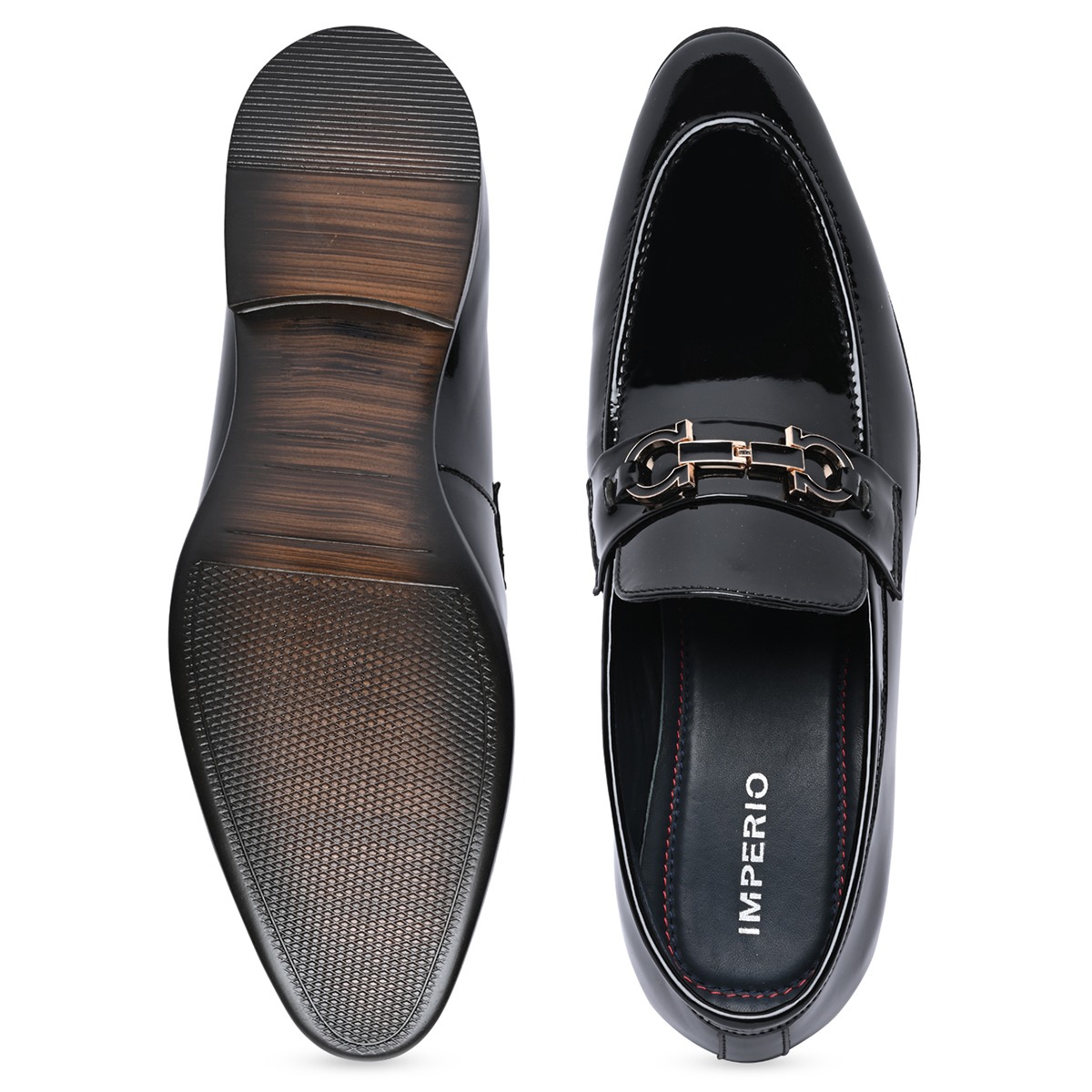 Make a bold statement with Imperio by Regal Shoes formal patent leather buckled slip-ons. These glossy handcrafted shoes are ideal for formal events, combining style and sophistication in one stunning design.