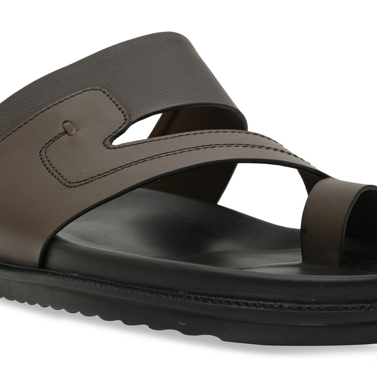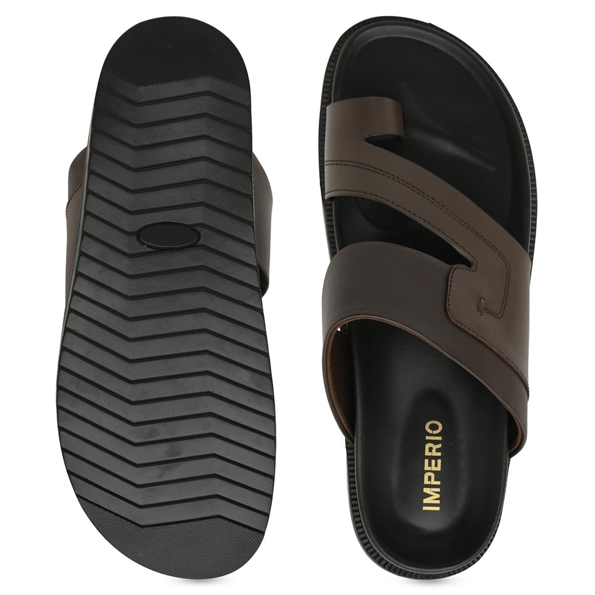 The Imperio by Regal Shoes Men's Leather One-Toe Sandals are a perfect fusion of contemporary design and timeless craftsmanship. Made from premium leather, these sandals feature a stylish one-toe design that provides both comfort and a secure fit. Ideal for casual outings or warm-weather days, their versatile look pairs effortlessly with ethnic attire, shorts, or chinos. Step out in style and comfort with these chic and durable leather sandals.