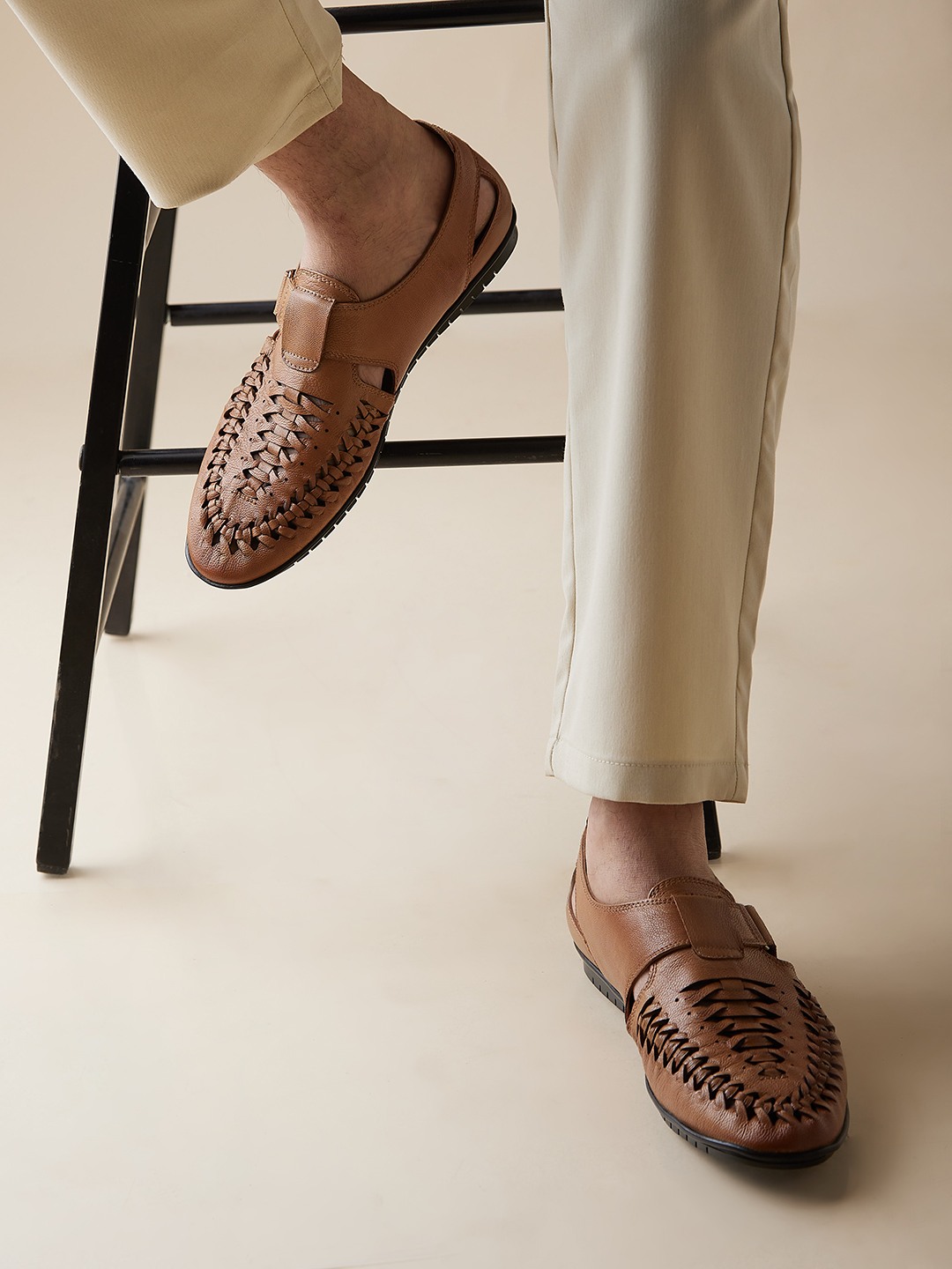 Elevate your ethnic style with Imperio Men's Formal Leather Woven Sandals. Designed with genuine leather and a TPR sole, these fisherman sandals are perfect for parties, weddings, and festive occasions. The Velcro closure ensures a secure and comfortable fit.