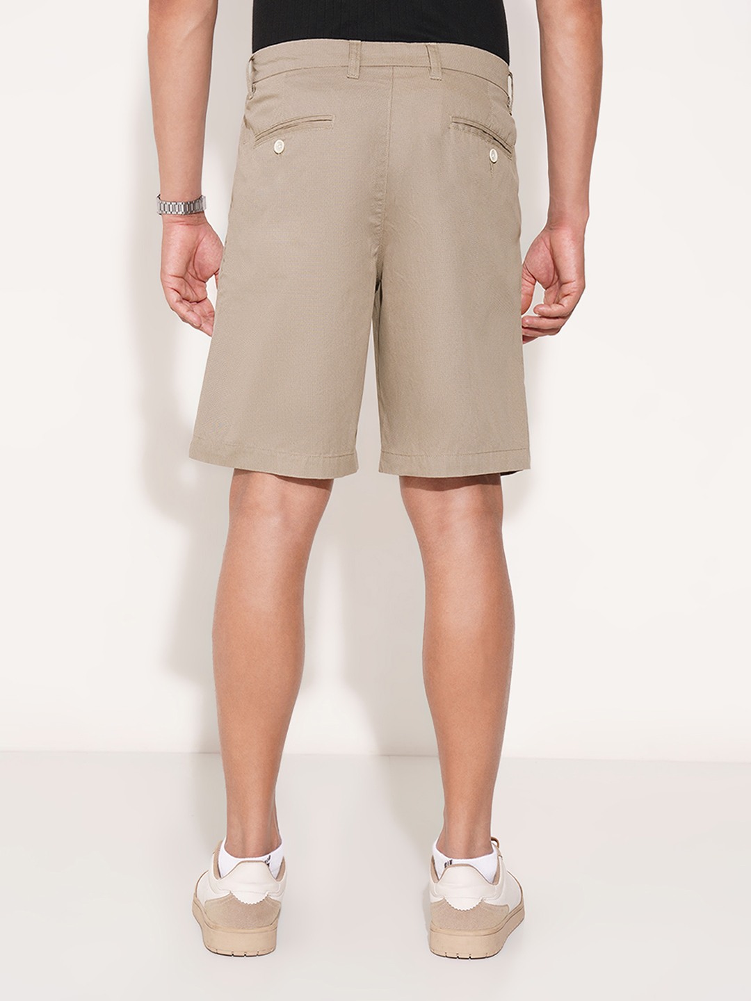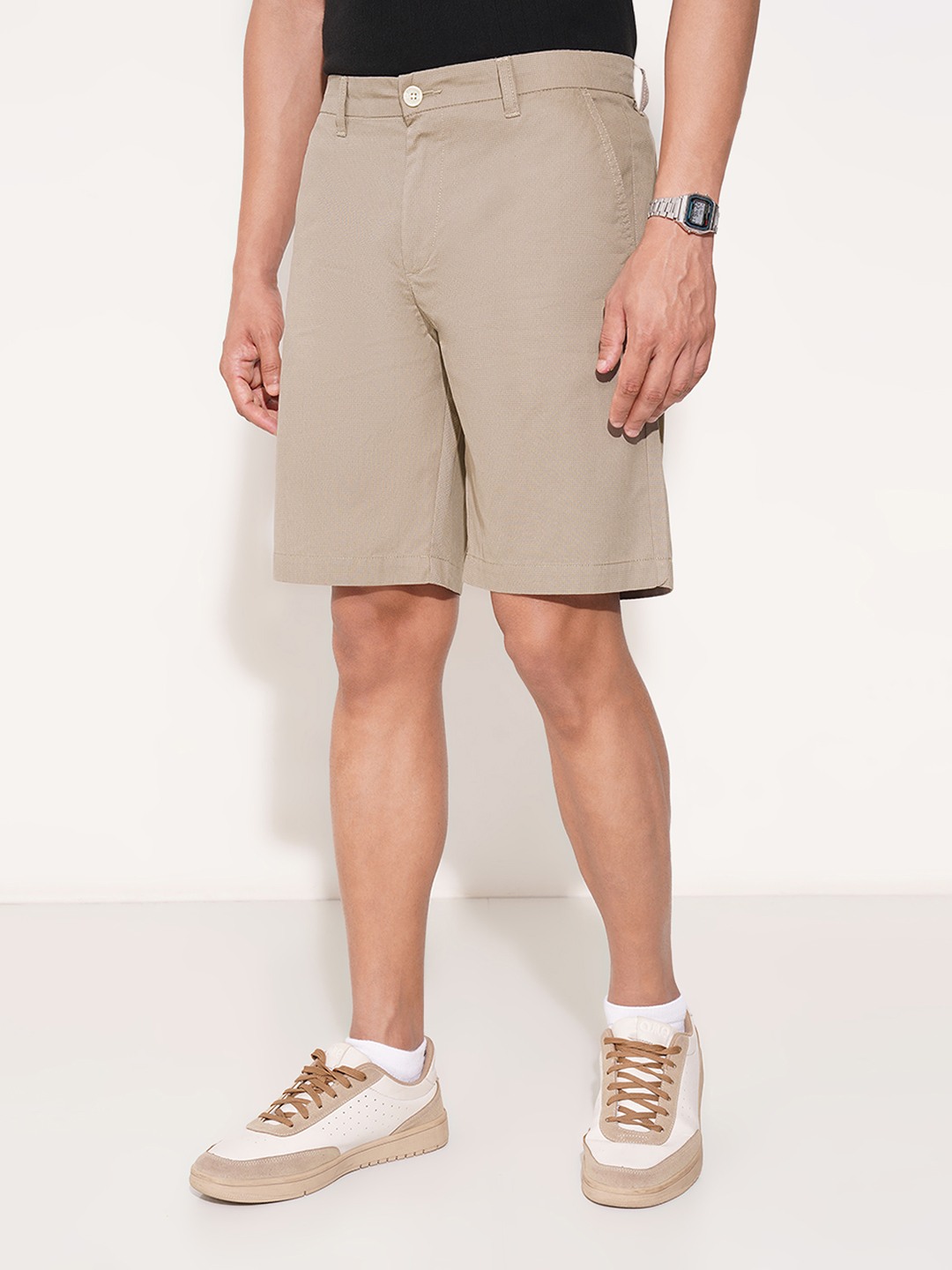 Home/Shorts/Peregrine by Pantaloons/khaki micro print tailored shorts