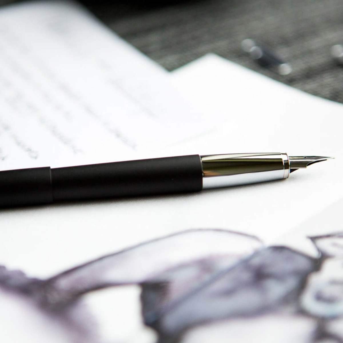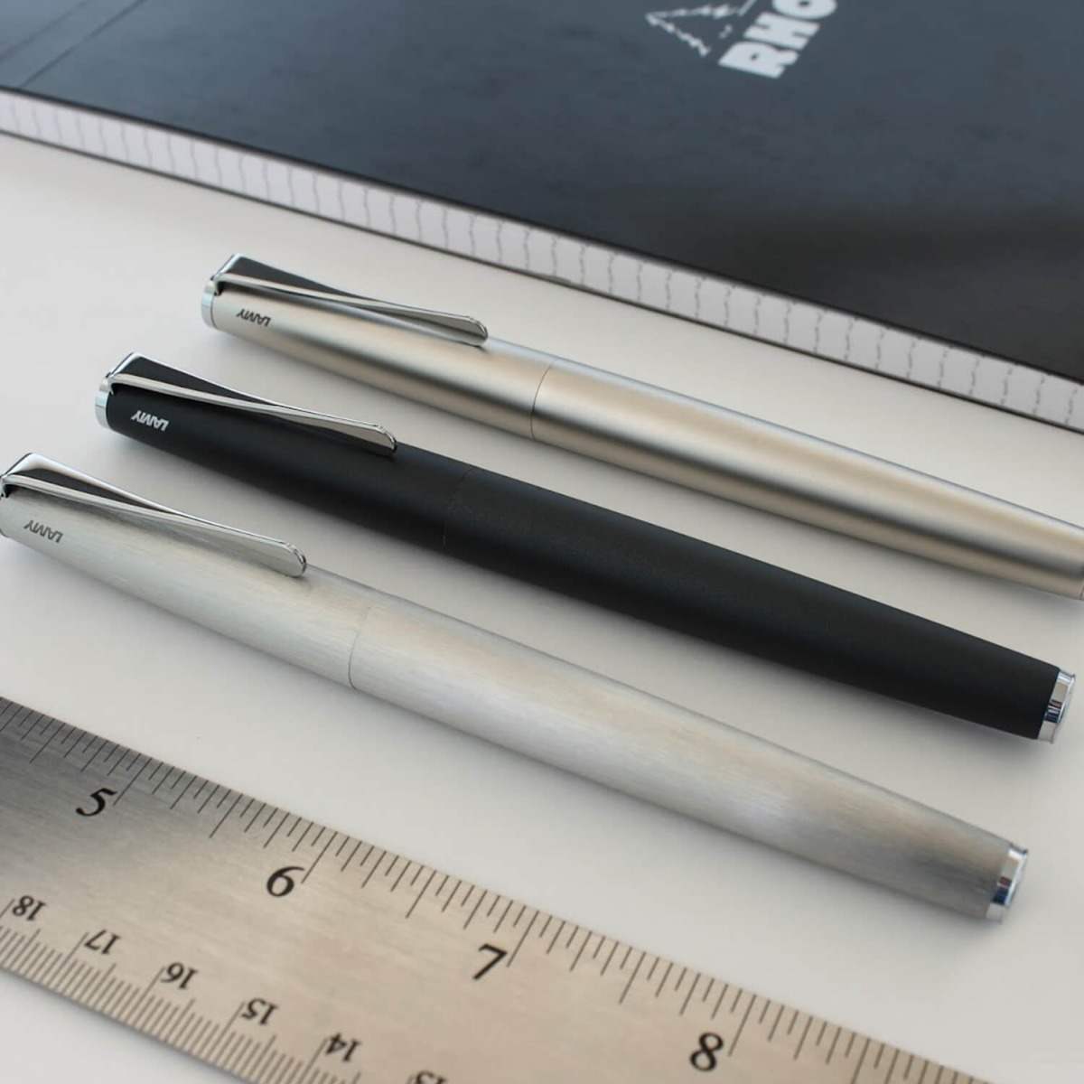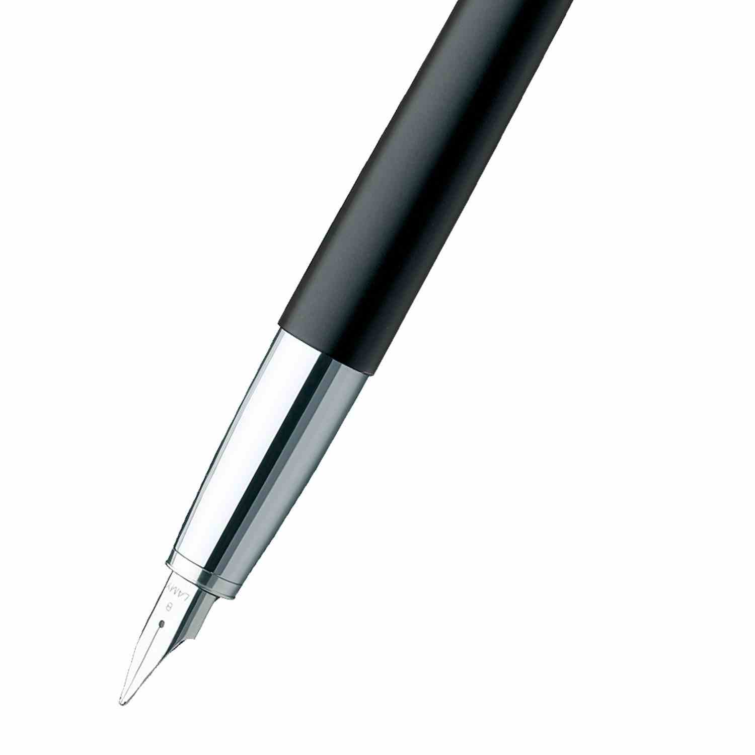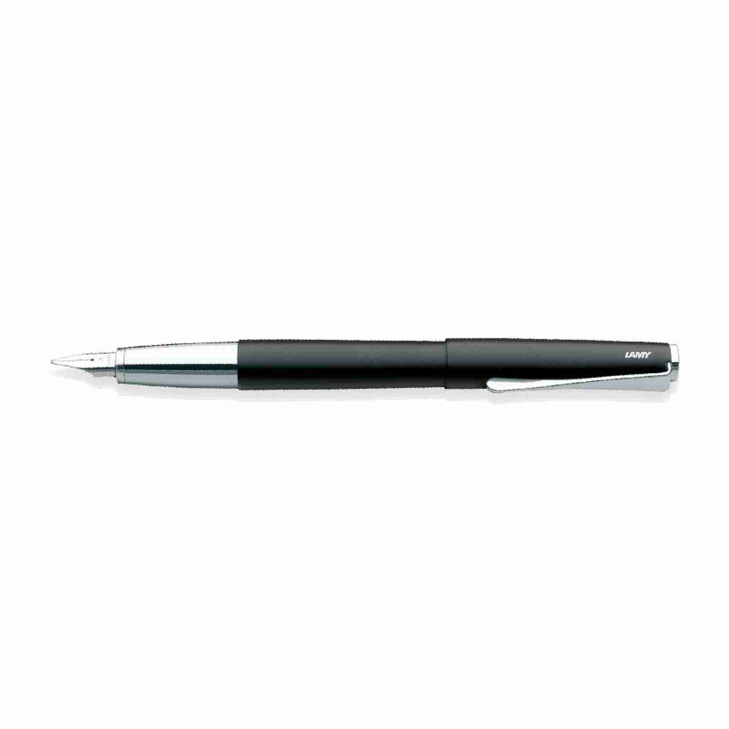 Lamy Studio fountain pen in Imperial black - a beautifully-finished all-metal design. A contemporary take on the classic cigar-shaped barrel design. High-quality lacquer finish and polished chrome fittings. The distinctive propeller-shaped clip is striking and practical. Easily-replaceable polished steel nib. Fit a Lamy Z27 converter for use with bottled ink, or use Lamy T10 cartridges. Also Available with Extra Fine and Medium Nib