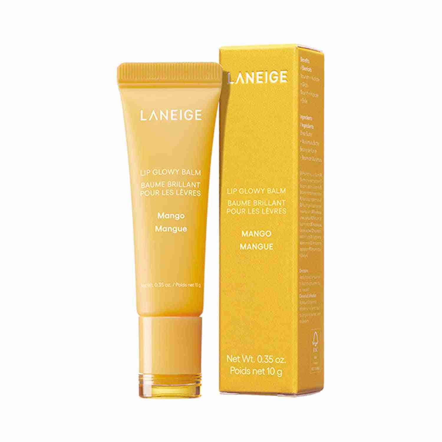 The Laneige Lip Glowy Balm - Mango (10 g) offers a perfect balance of color and care. This lightweight, moisturizing lip balm is infused with murumuru butter and shea butter to provide intense hydration and lock in moisture for longer to soften chapped lips. Also, this LANEIGE tinted lip balm gives the lips a glossy tint that lasts all day.