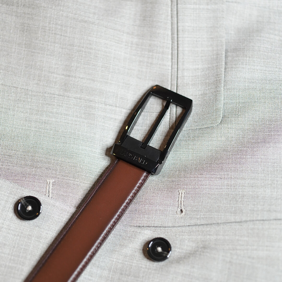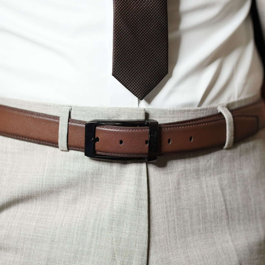 Supple leather action on your waist! You will want to wear this belt out of love rather than necessity. Incredibly stylish and uber modern, the combination of a cinnamon coloured strap and a dual finished blackened stainless-steel buckle is like none other. Smooth grained leather and flawless stitches are a stand out factor in this best - selling belt. If you have been searching for an uncommon brown shade, this belt is for you. Wear it and be sure to stand out from the crowd. Presented in Lapis Bard signature gift box with a dust bag to store in while travelling.