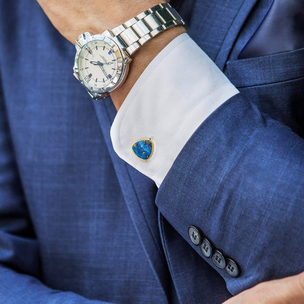 Wear them with a suit and crisp shirt for an ultra- modern yet contemporary finishing touch. This stunning pair of cufflinks make a great impression on everyone you meet. Discerning and sophisticated, this best seller pair will add a curated finish to any smart ensemble. England is etched on the stem. They fasten with a custom-made logo engraved whale back closure for easy attaching. The cufflinks are presented in a plush Lapis Bard box and can also make a perfect gift that is guaranteed to be treasured for years to come.