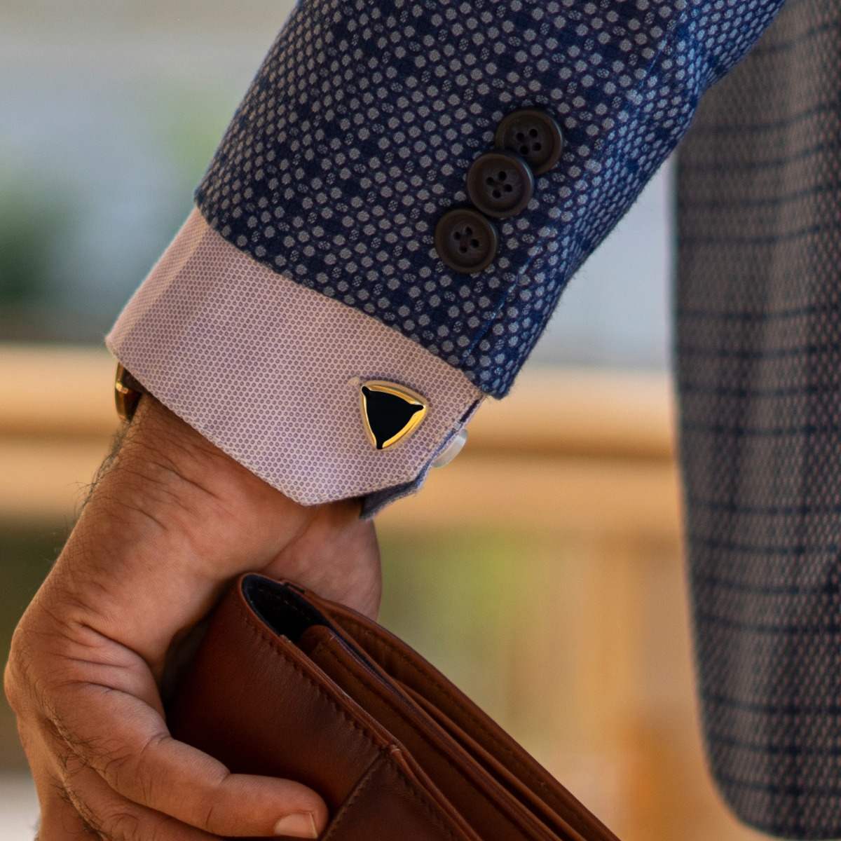 Shard cufflinks are crafted to add an element of interest to your tailored suits. The cufflinks combine fine enamel detailing with superior stainless-steel that is finished with 24k gold-plating. They fasten with a custom-made, logo engraved, whale back closure for easy attaching. The cufflinks are presented in a plush Lapis Bard box and are a wonderful gifting option that is guaranteed to be treasured for years to come.