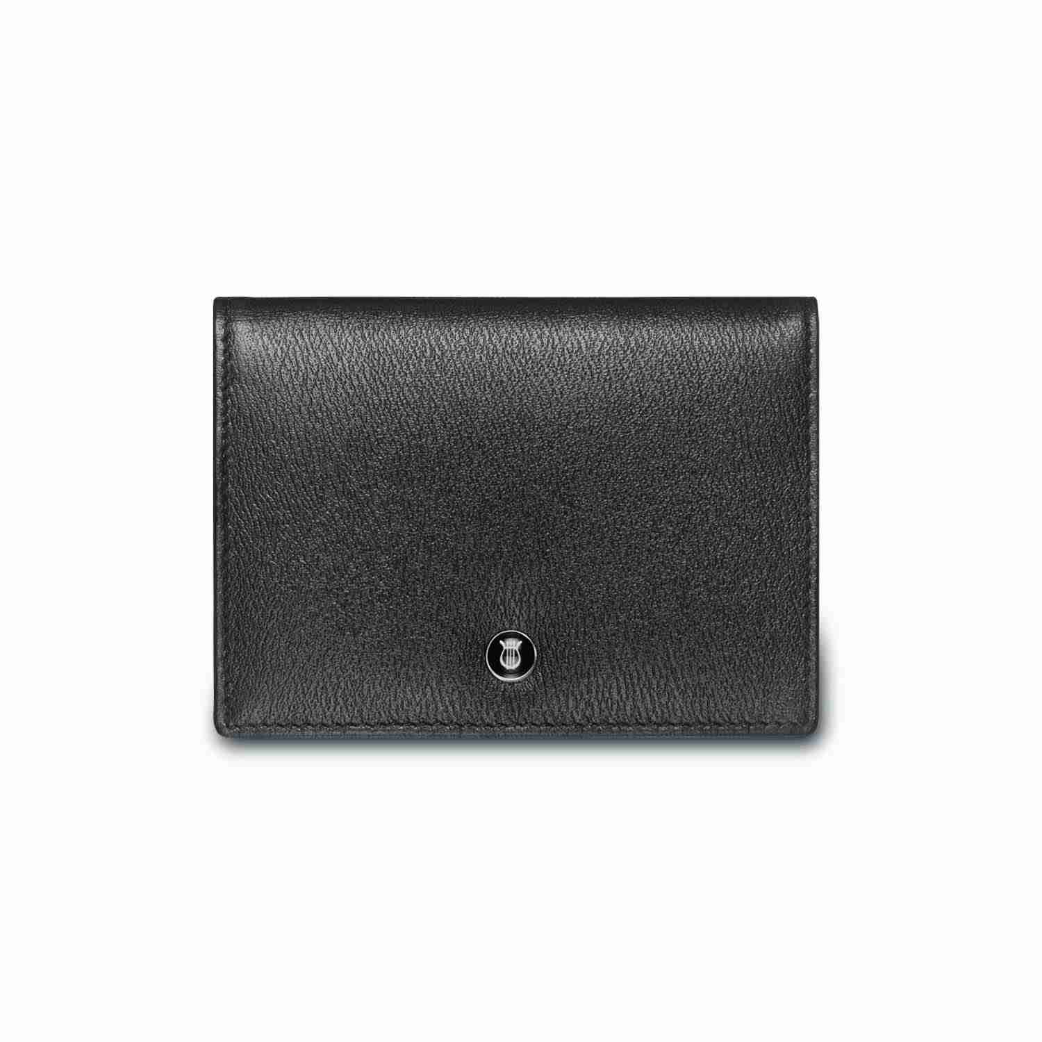 Keep your essentials close at hand with the Belgravia credit card holder. The Belgravia card holder is created for those who find a traditional wallet cumbersome to carry. Slim and compact, the design of the Belgravia card holder is finished in top grain Italian leather with monogrammed jacquard silk lining. Equipped with 3 card slots, a slip in pocket to keep a few folded currencies and an ID pocket making it an everyday accessory to carry your most-used cards. Smoothly rounded corners minimizes the wear and tear around the edges. The exterior is embellished with the Lapis Bard Lyre logo in black and silver finish. Presented in Lapis Bard's signature blue gift box.