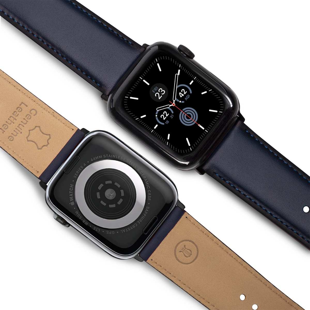 This M-L size strap is lined with soft nubuck leather which lets the strap rest comfortably on your skin and prevents the leather from getting sweaty and wet. The leather ages beautifully and develops a unique patina over time. The distinguished Lapis Bard Lyre lends its allure to the piece, creating a truly charming accessory.