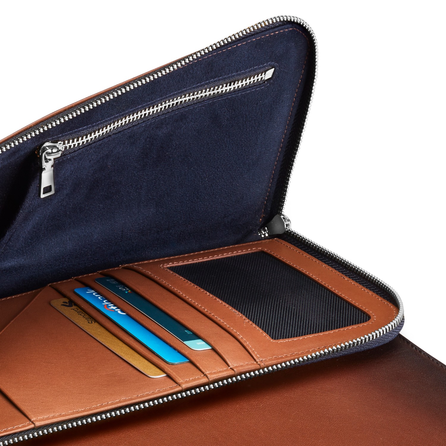 No Matter Where Your Travels May Take You, If You Like An Uncluttered Look, It Doesn't Get Better Than This. Slim And Handsomely Stylish, This Laptop Sleeve Is Made Of The Finest Semi Vegetable Dyed Leather, The Two-Tone Look Is Hand Painted On The Edges That Gradually Darkens The Colour As It Imperceptibly Passes From One Shade To Another, Taking Inspiration From Leonardo Da Vinci's ‘Sfumato’ Technique. The Rare And Beautiful Brogue Design On The Removeable Strap Intrigues The Eye. The Accordion Gusset On The Outside Will Accommodate Your Phone, Travel Documents, Cards And Currencies. Thoughtfully Provided Is The Quick Access Pocket At The Back And Hidden D-Hooks That, With The Removeable Strap Quickly Converts Into A Cross-Body Bag While Staying Out Of Sight When Carrying In Hand.