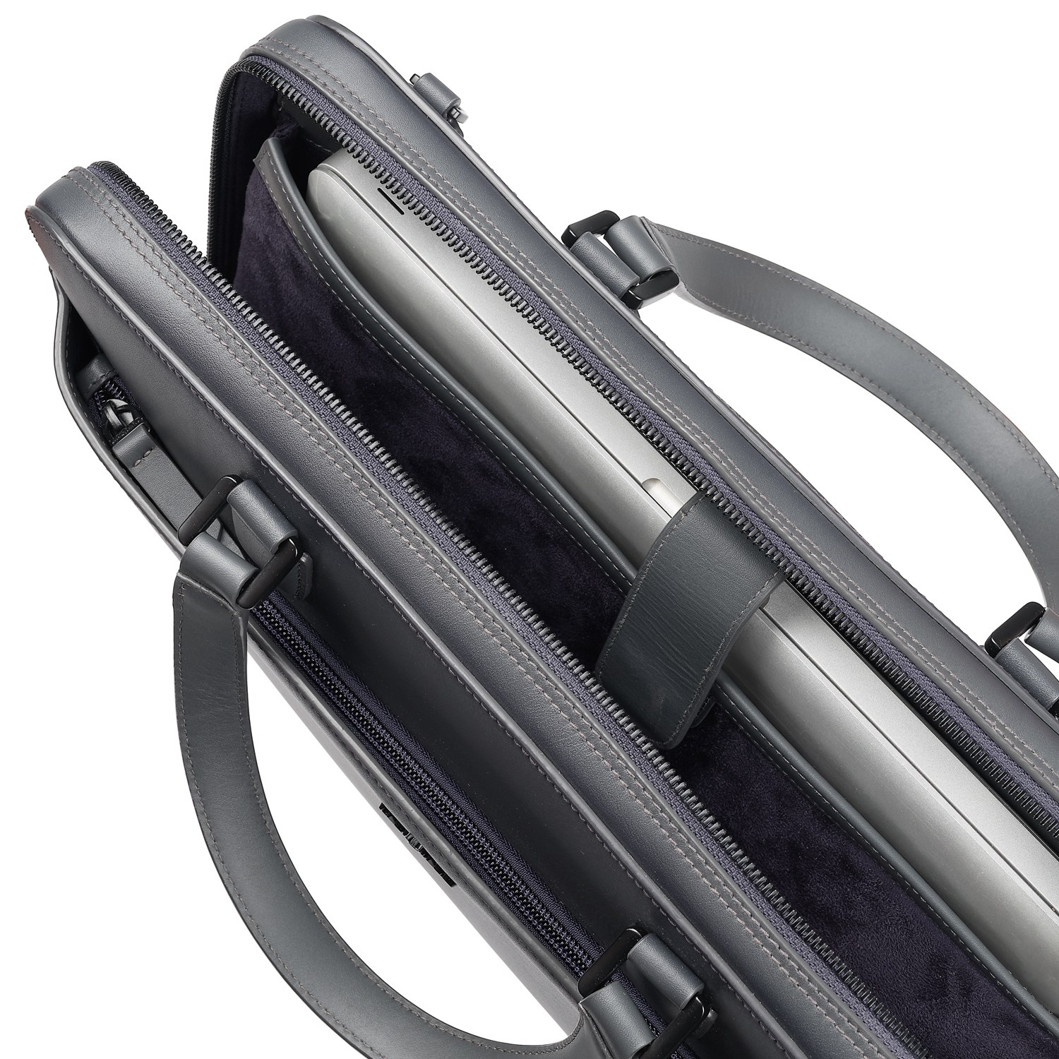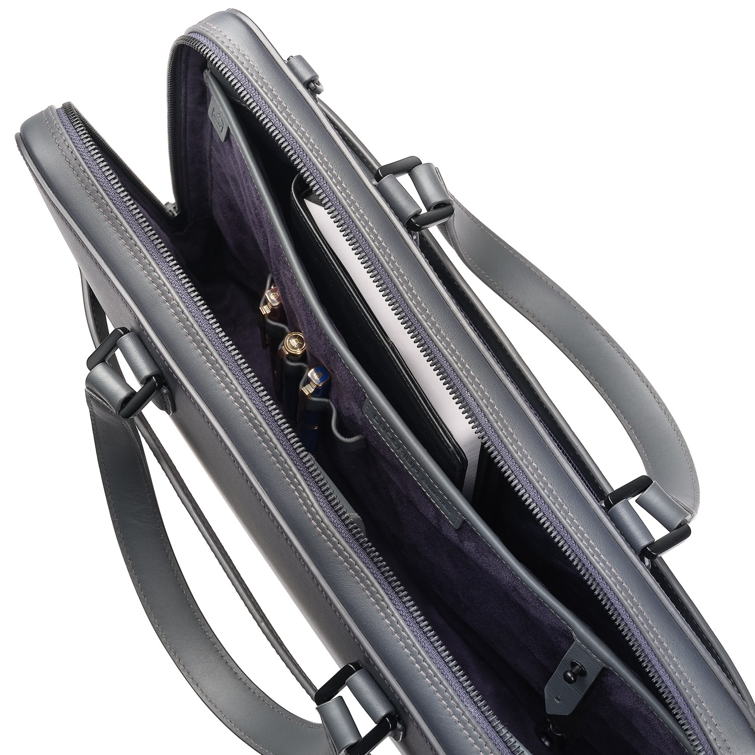 A Wonderful Companion While Travelling Or At The Office, The Spencer Has A Deceptively Slim Silhouette But Can Carry All Your Office Essentials In An Organised Fashion. The Compartments Are RFID-Safe To Help Protect You From NFC Theft And The Bag Has A Stroller Holder At The Back To Make It Easy To Carry Along With Your Pull-Along Suitcase. It Features The Brands Emblem In A Black Finish, Microfiber Lining, A Well-Constructed Zipper, A Snap Hook, And Metal Bottom Studs. This Bag Has A Quilted And Padded Laptop Compartment Suitable For Most 15-inch Laptops.