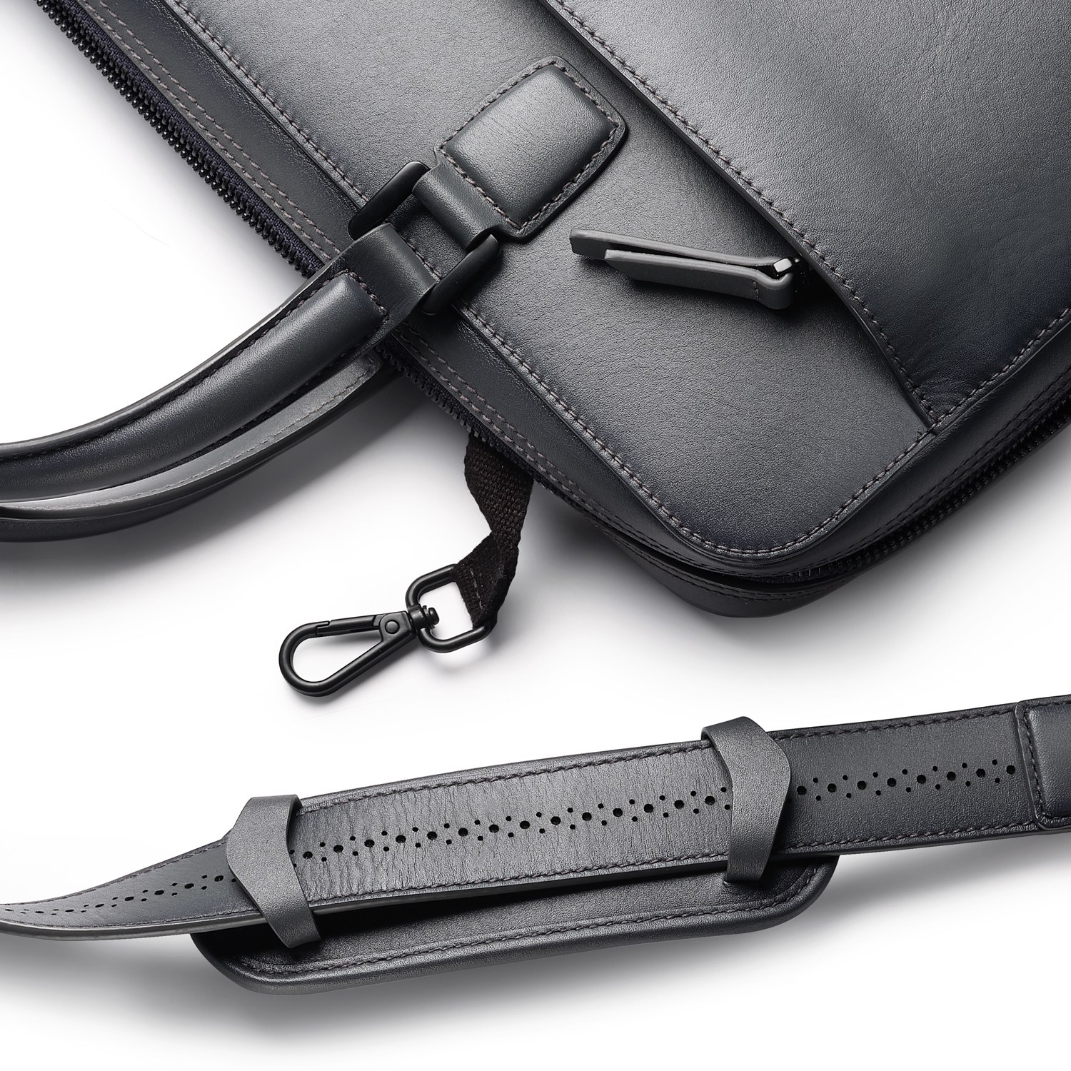 Spencer Showcases The Ducorium Collections Signature Dual-Tone Coloring Which Is Created By Master Craftsmen Using The Da Vinci-Inspired Sfumato Technique. The Gorgeous Duotone Leather Develops A Unique Patina Over Time. The Bag Comes With A Removable Shoulder Strap. It Also Features A New Age Apple AirTag Holder Which Is Also Removable And Can Be Used Independently.