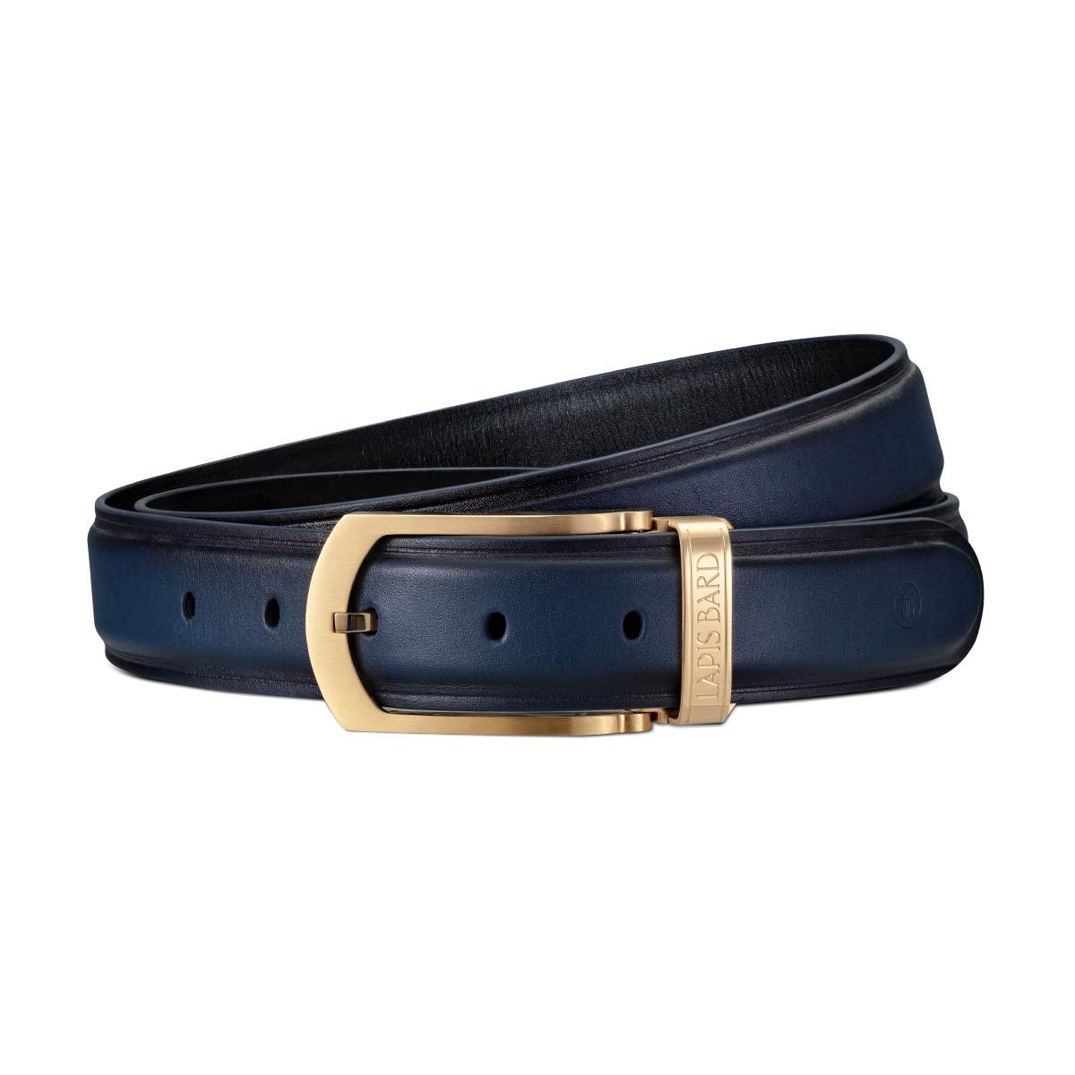 Steeped in lyrical emotion and sultry melodies, it's easy to understand why blues music has had such a deep and lasting impact on the Western world. It evokes a range of emotions from joy to triumph and at times, soulful melancholy. The Lapis Bard Blue pays homage to this legendary genre with this latest arrival. Break away from the norm and bring a bold appeal to your dressing with this blue coloured belt with laded gold fittings. Taking inspiration from the Renaissance technique created by Leonardo da Vinci‚“sfumato” creates a rare, original colour, the edges hand painted by highly skilled craftsmen, gradually darken the blue colour as it imperceptibly passes from one shade to another. Presented in a Lapis Bard signature gift box with a dust bag to store in while travelling.