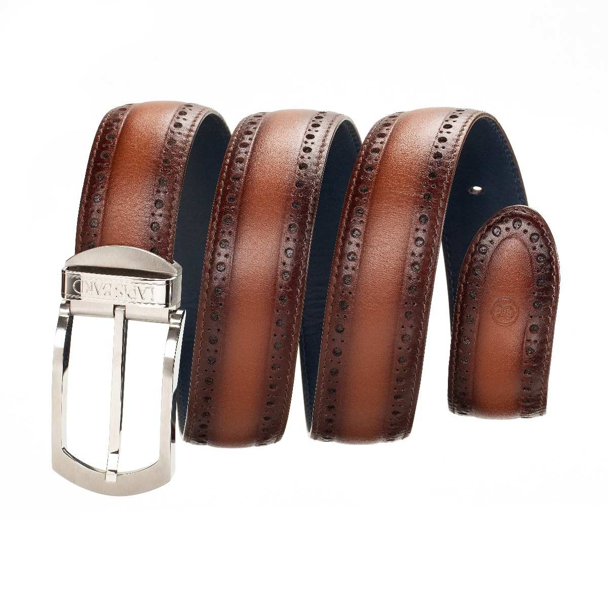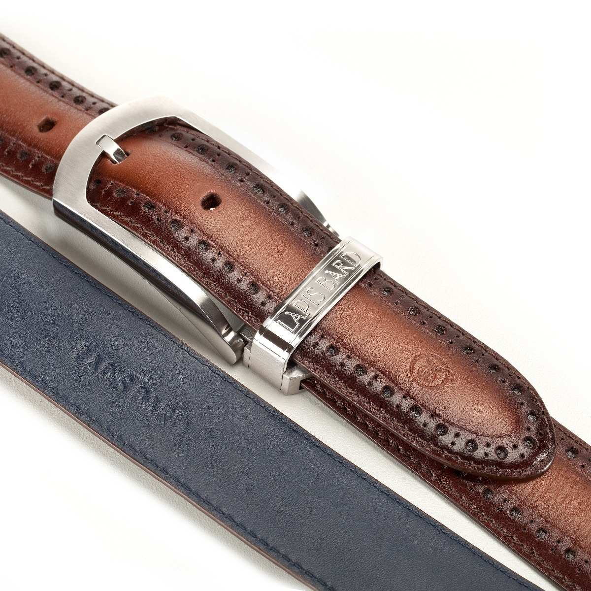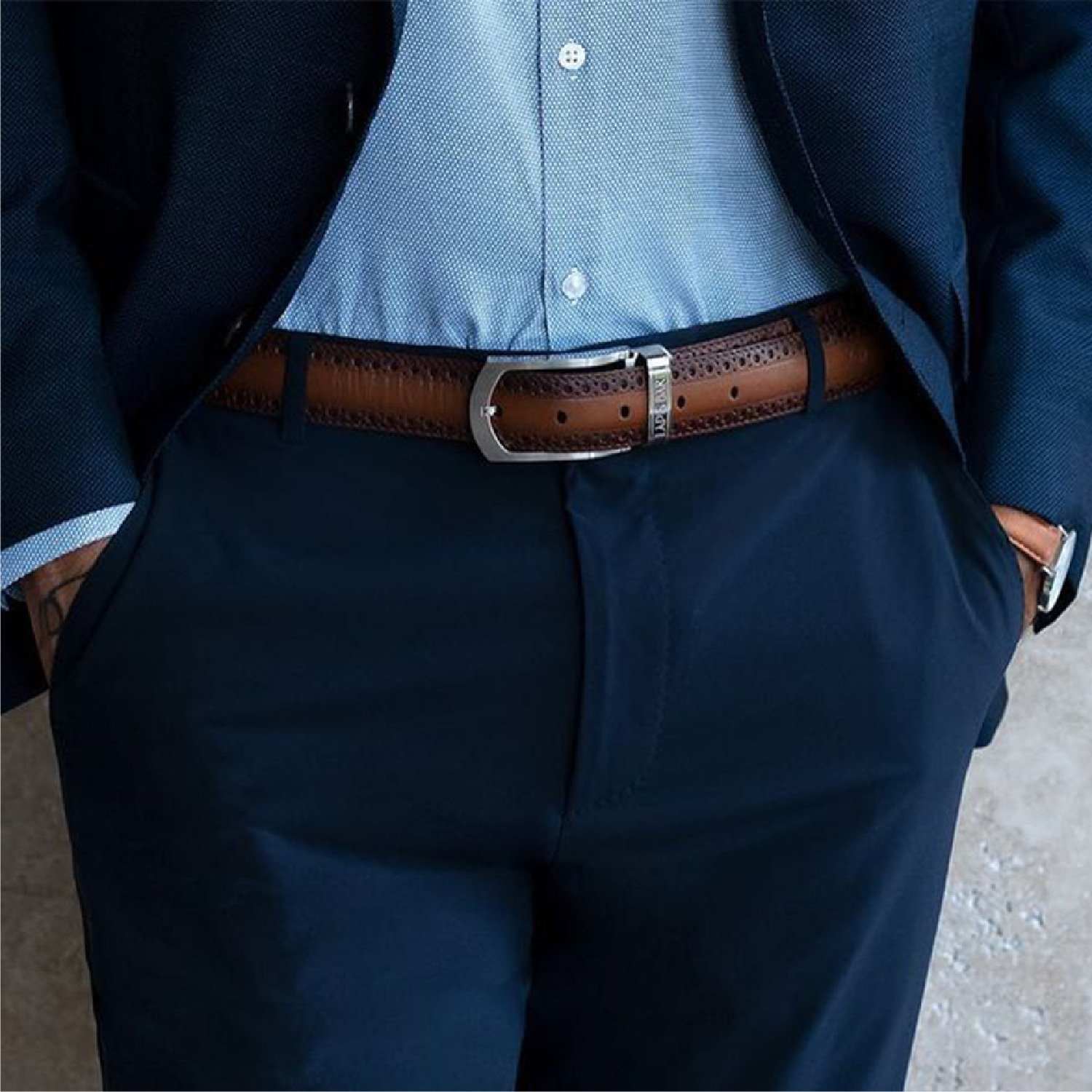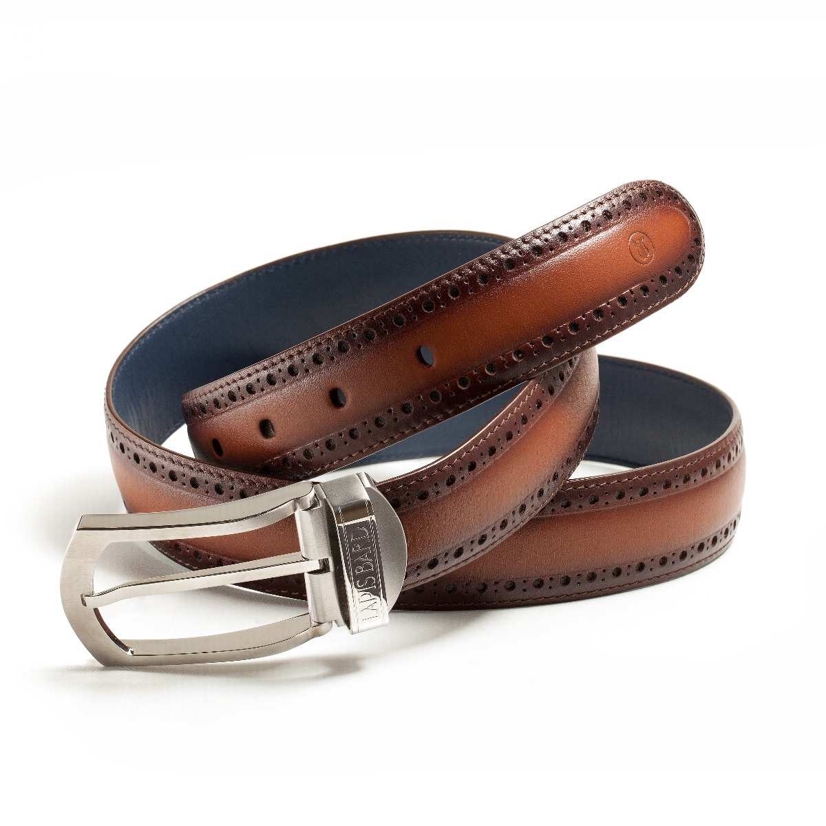 Complete your look with this genuine leather Southwark Brogue belt. The brogue detailing and dual-toned effect adds to the suaveness of the belt. Complemented by an adjustable stainless-steel prong buckle and flaunting the brand's signature, this belt effortlessly blends classic and contemporary style. This versatile belt is presented in a signature blue gift box.