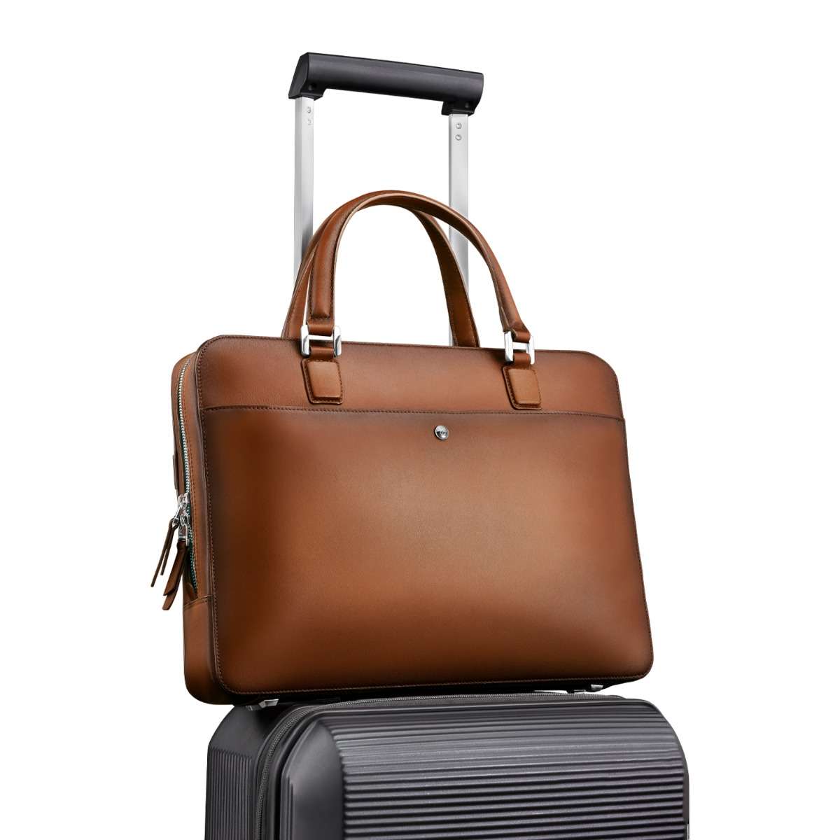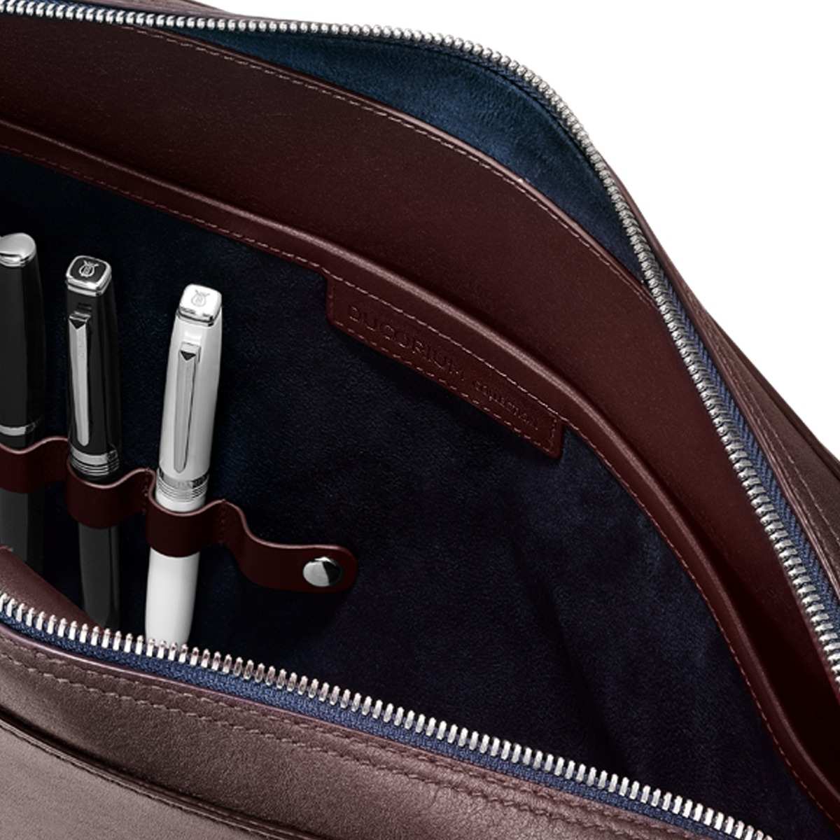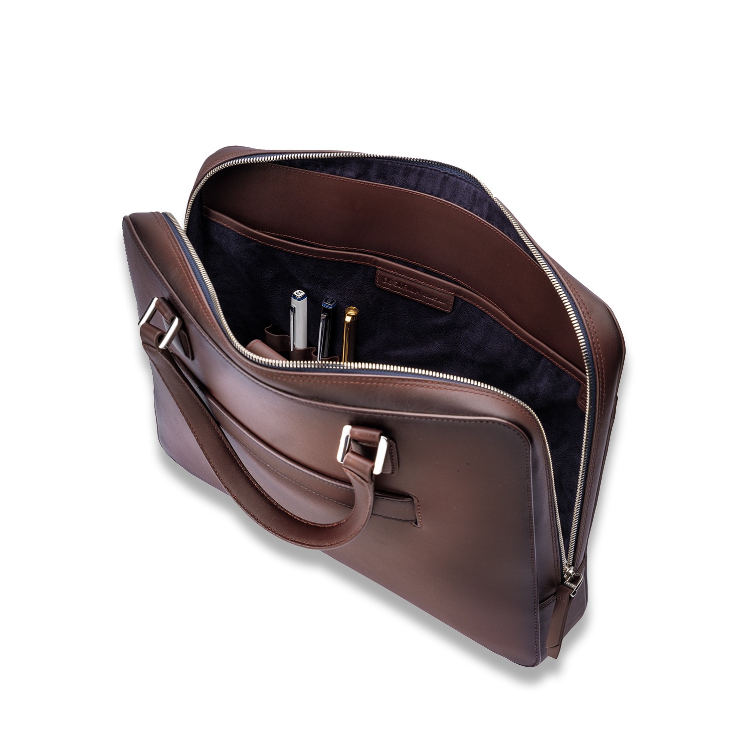 The Spencer showcases the Ducorium collections signature dual-tone colouring which is created by master craftsmen using the Da Vinci inspired Sfumato technique. It is the latest entrant and slimmest bag in this bestselling collection. Equipped to carry a 14-inch laptop, the stunner is a beautiful blend of old-world charm and contemporary sleekness. The sublime finish of the Bordeaux leather give it its timeless appeal, while its stylish chrome fittings make it very much a bag of, and for, this time.