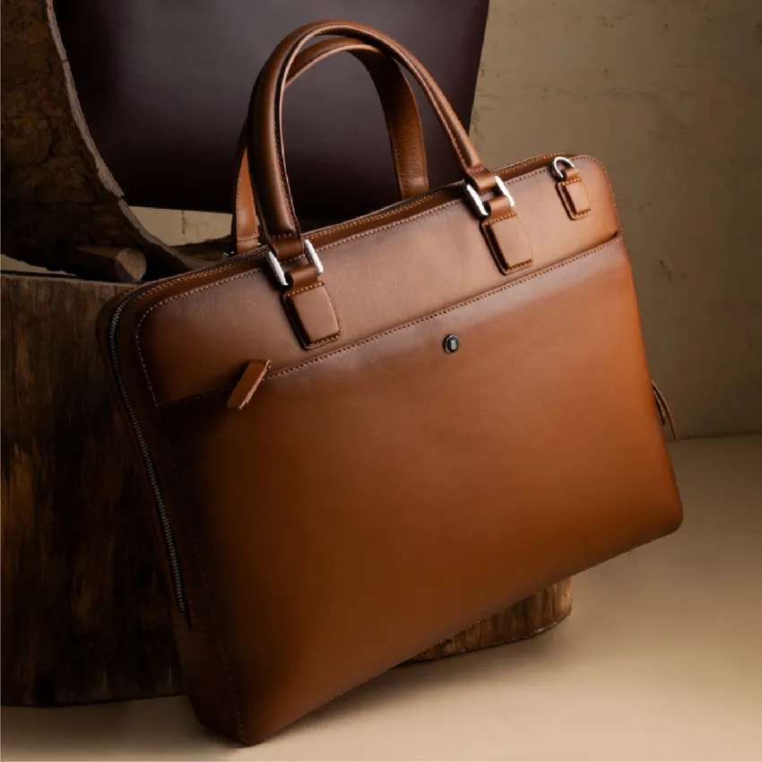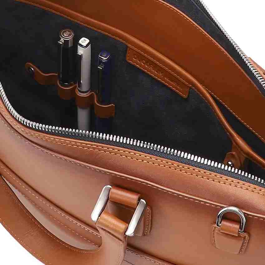Wide, zippered opening to access the main-compartments with well-constructed, smooth zipper-pullers Duotone leather that will develop a unique patina over time