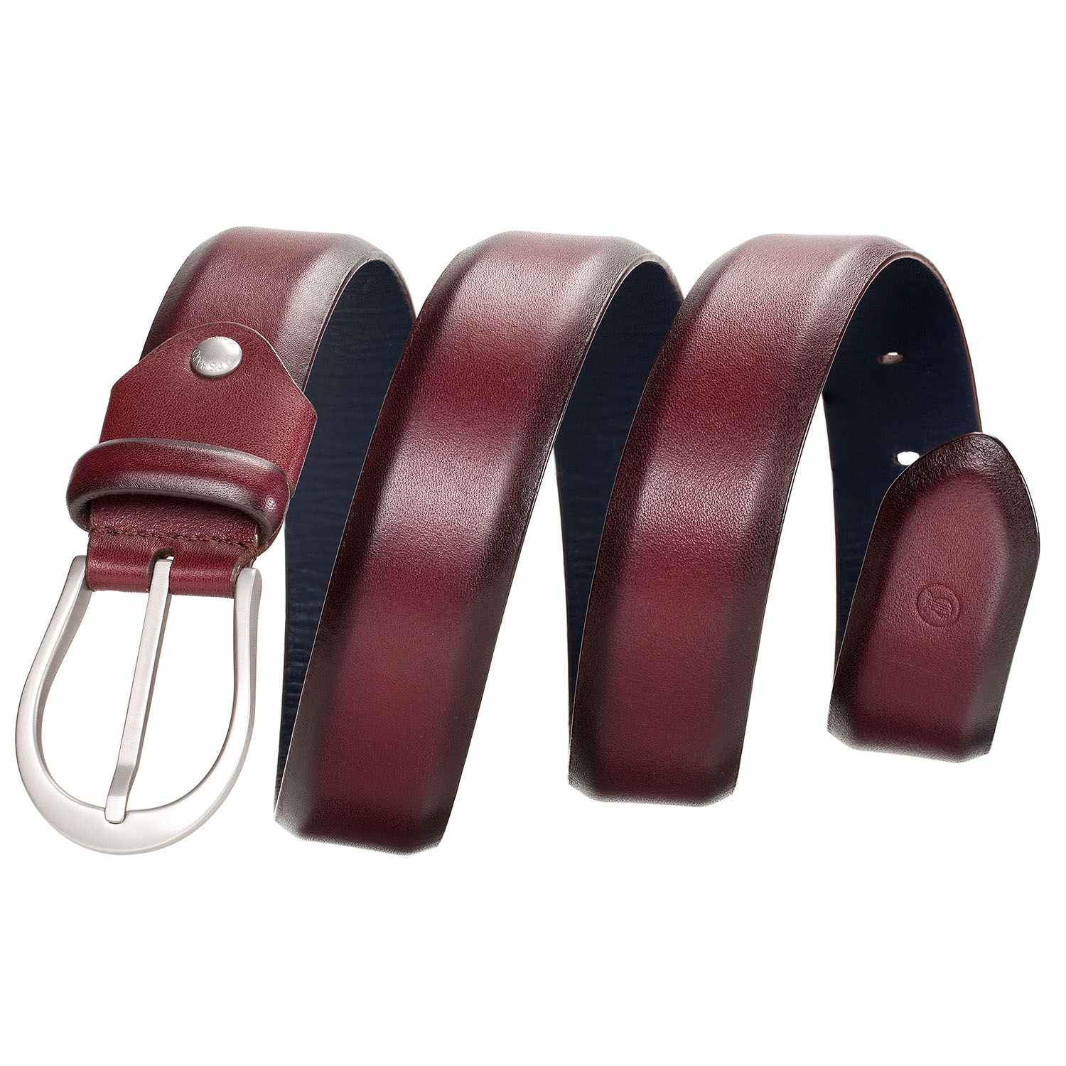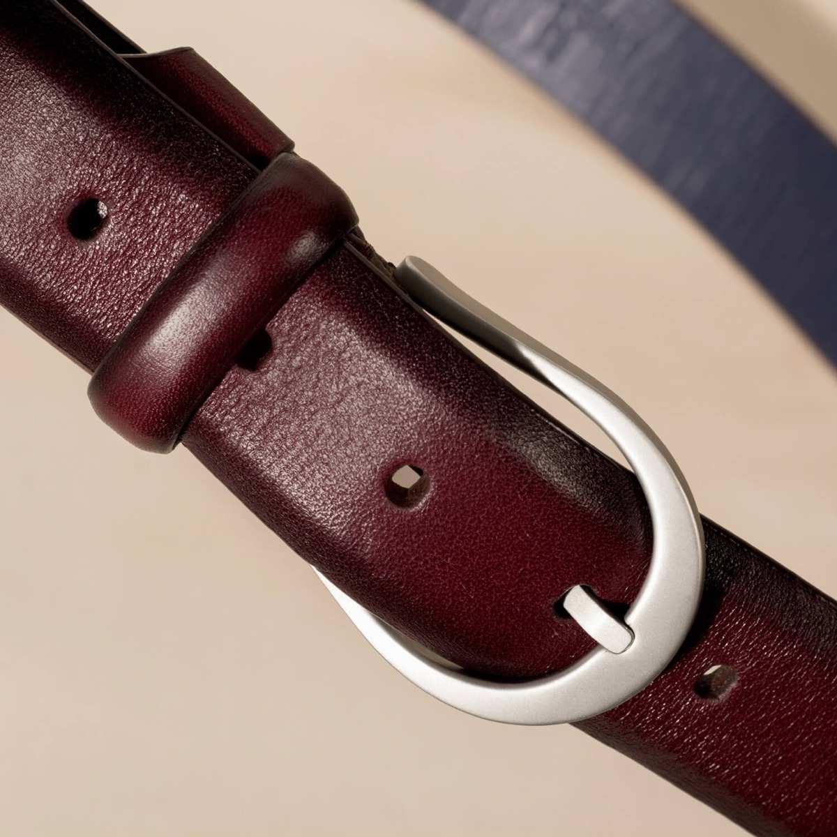 Drawing its inspiration from the Lyre, superior craftsmanship defines this merlot hued belt from Lapis Bard. The combination of bold merlot coloured strap with a classic stainless-steel buckle in unique satin finish is incredibly stylish and uber modern. The two toned finish on leather offers an exciting and fresh alternative for people who yearn to stand out in the crowd. The classic tab integration with minimal and precise construction are the hallmarks of this belt making it striking and supremely functional. The belt is presented in a luxe Lapis Bard signature gift box.