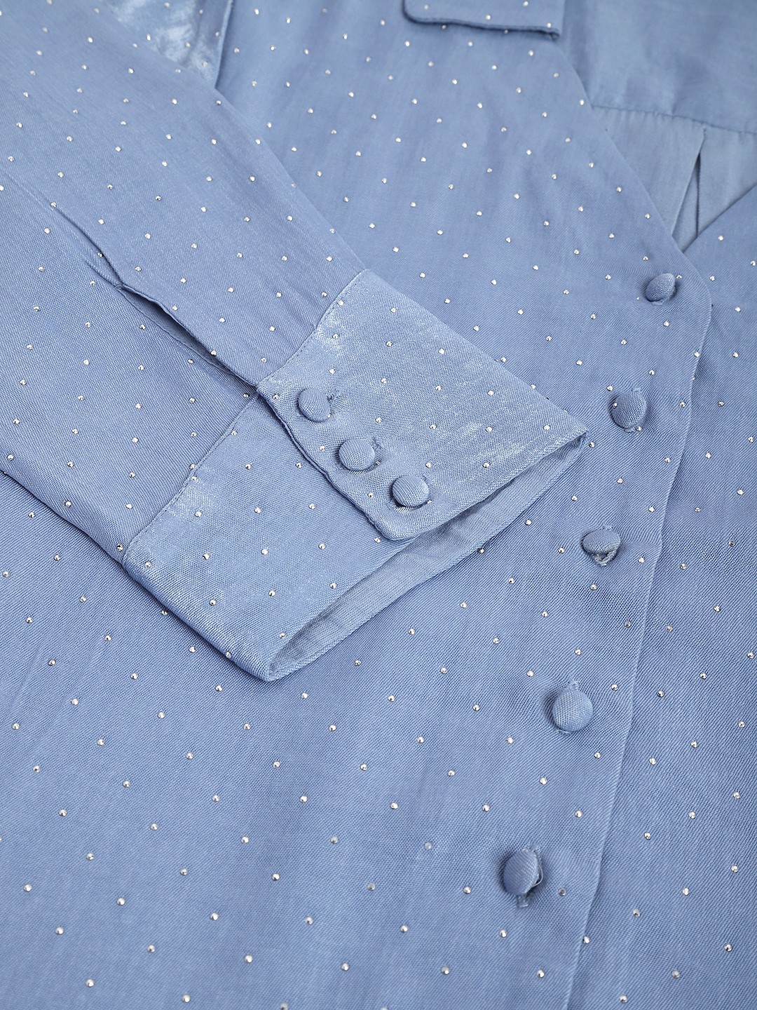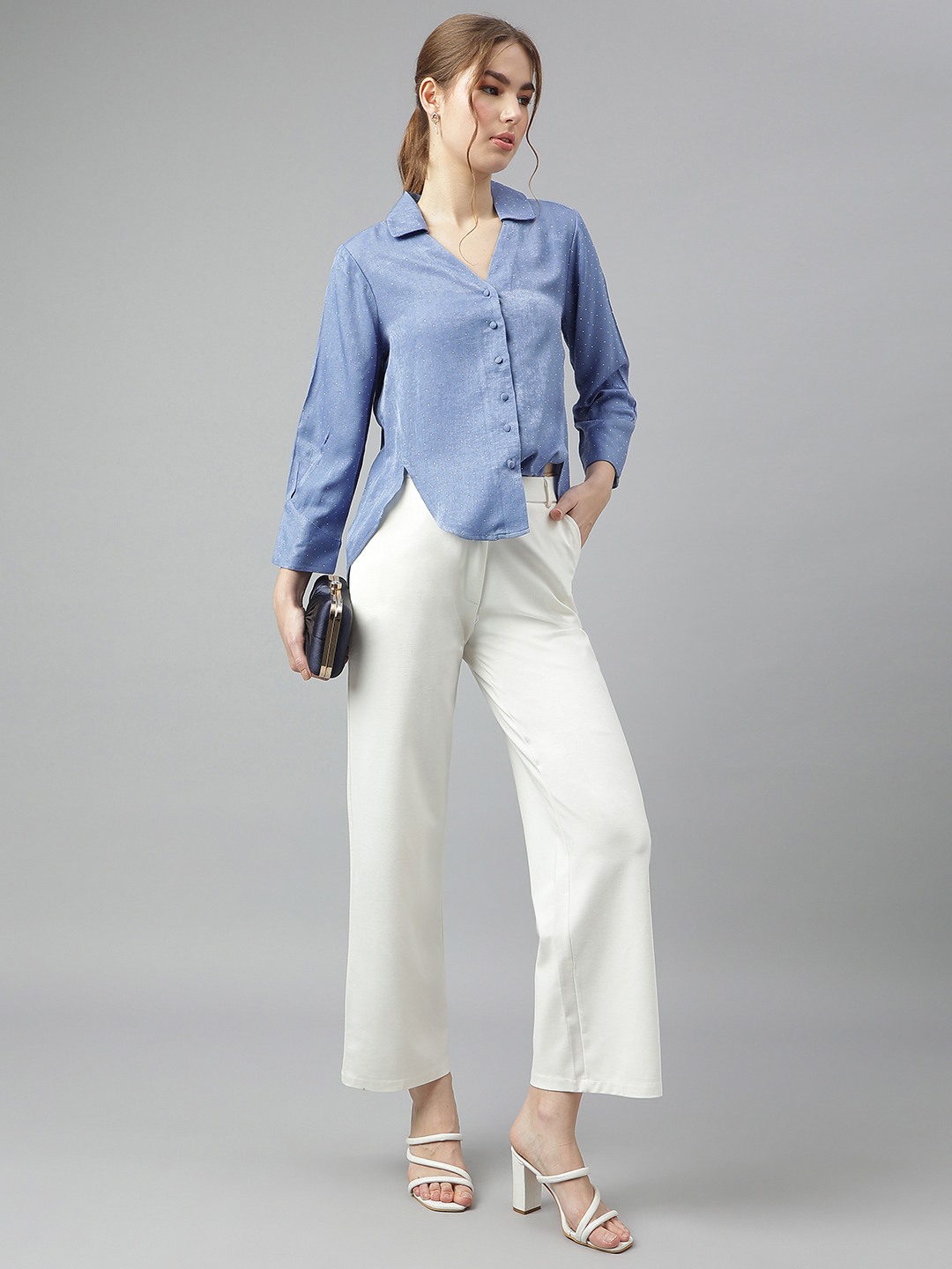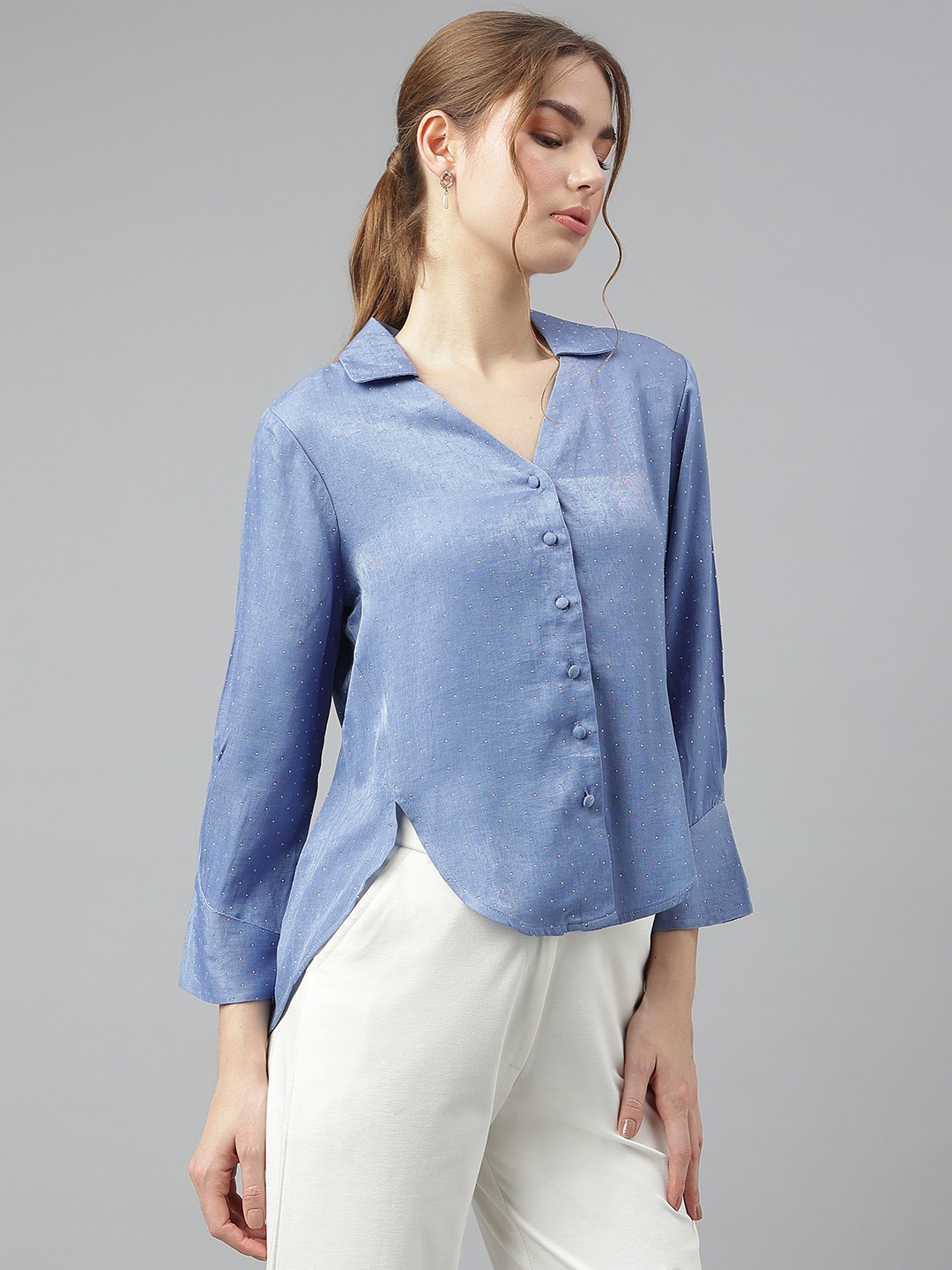 Latin Quarters Women Blue 3/4 Sleeve Collared Solid Shirt
