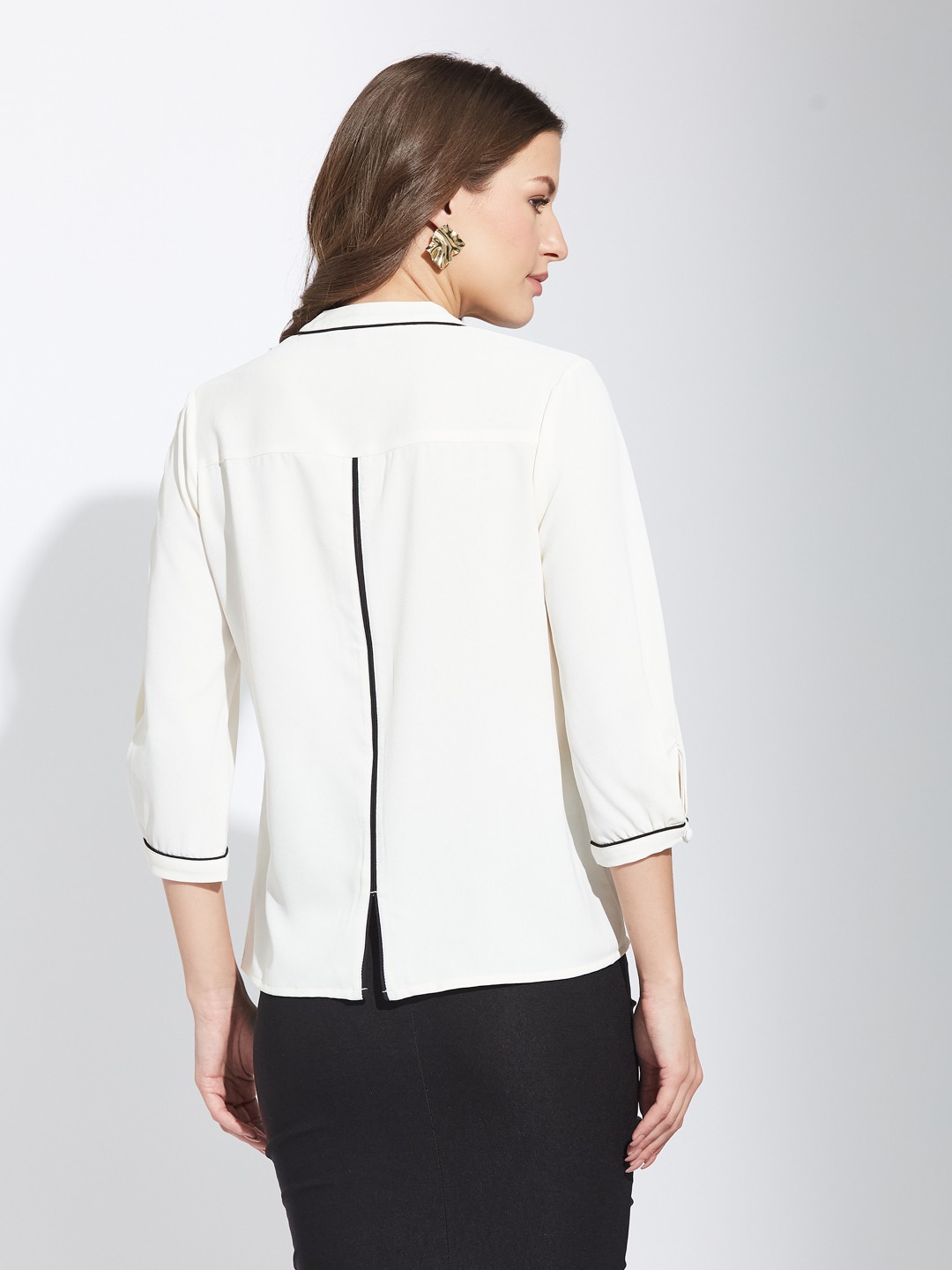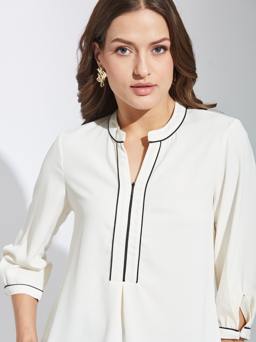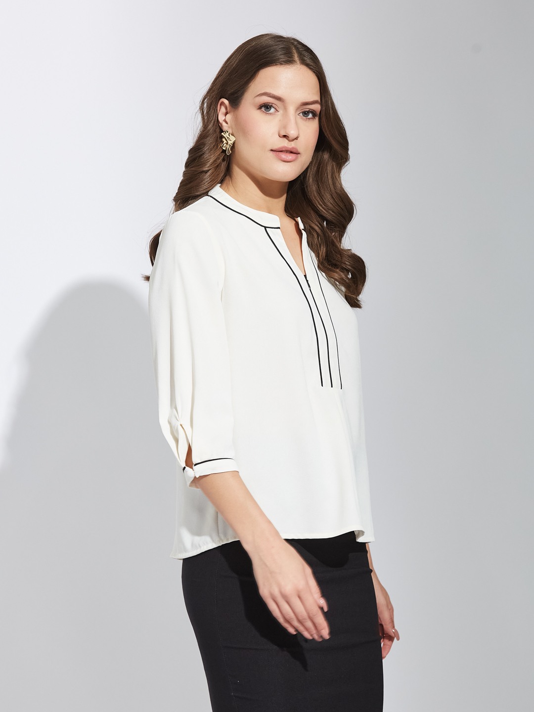 Latin Quarters Women Ivory Full Sleeve Solid Blouse Blouse