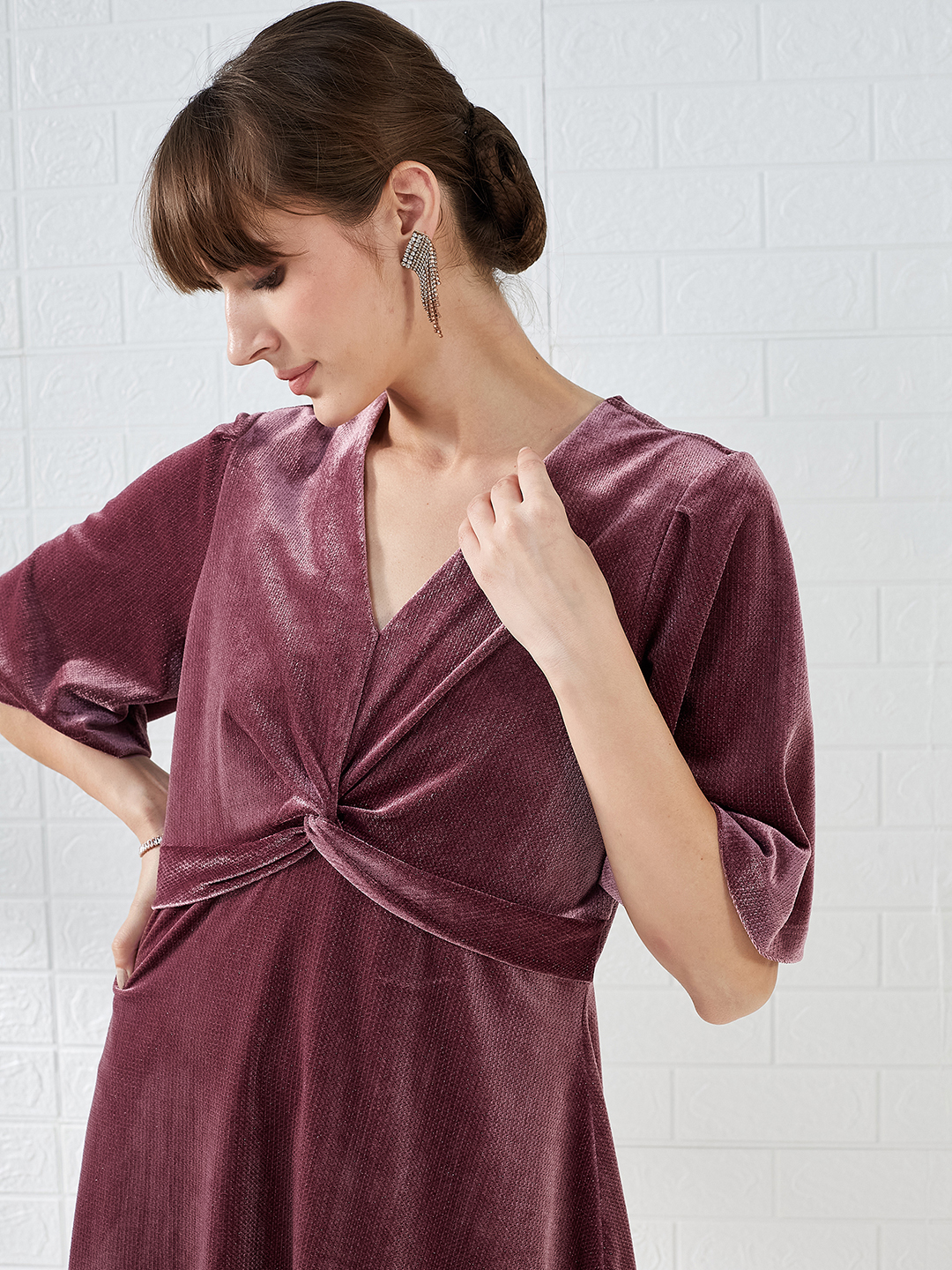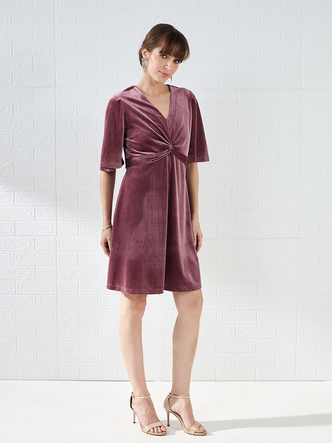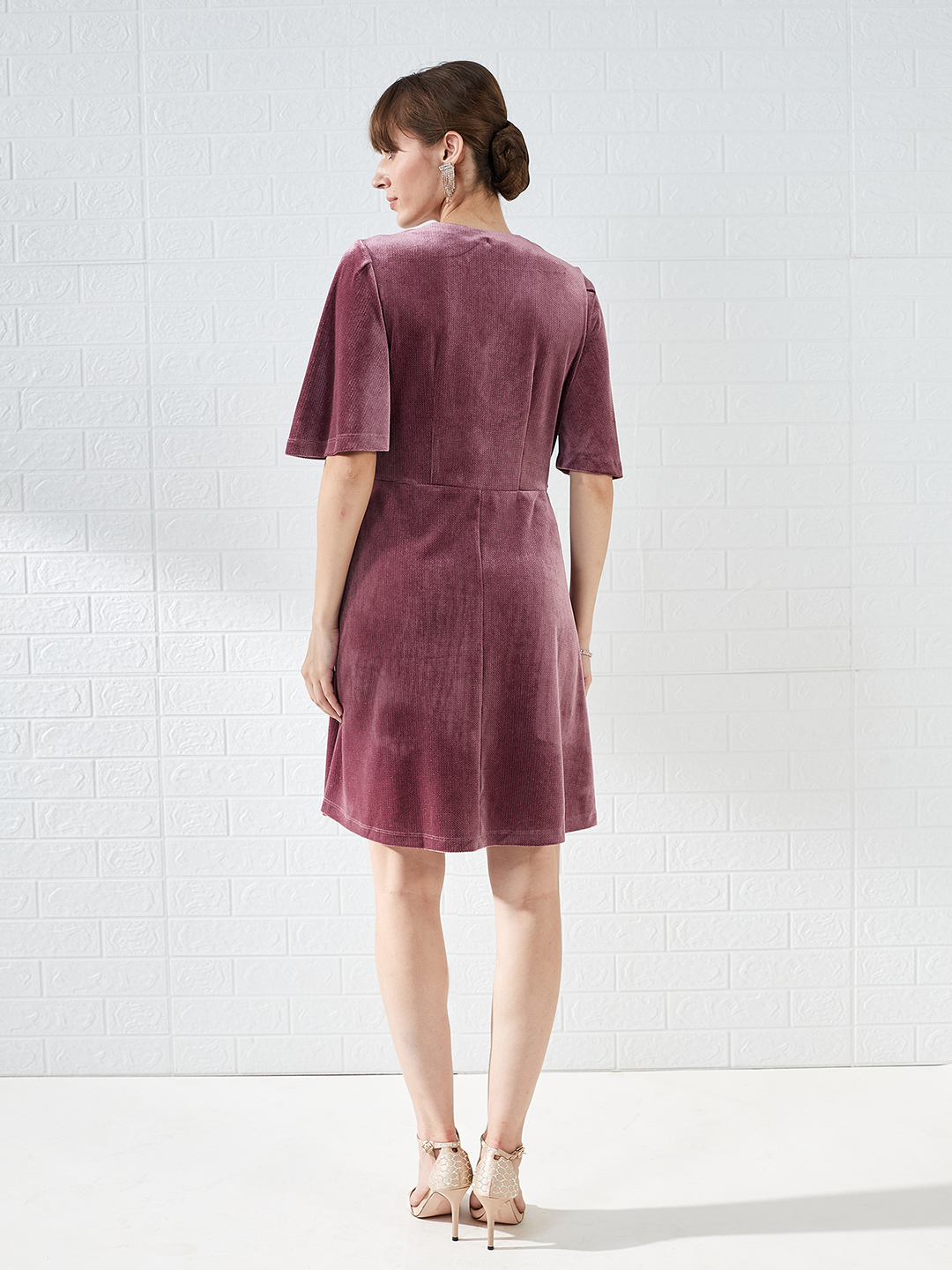 Latin Quarters Women Pink Short Sleeves V-neck Fit & Flare Party Dress
