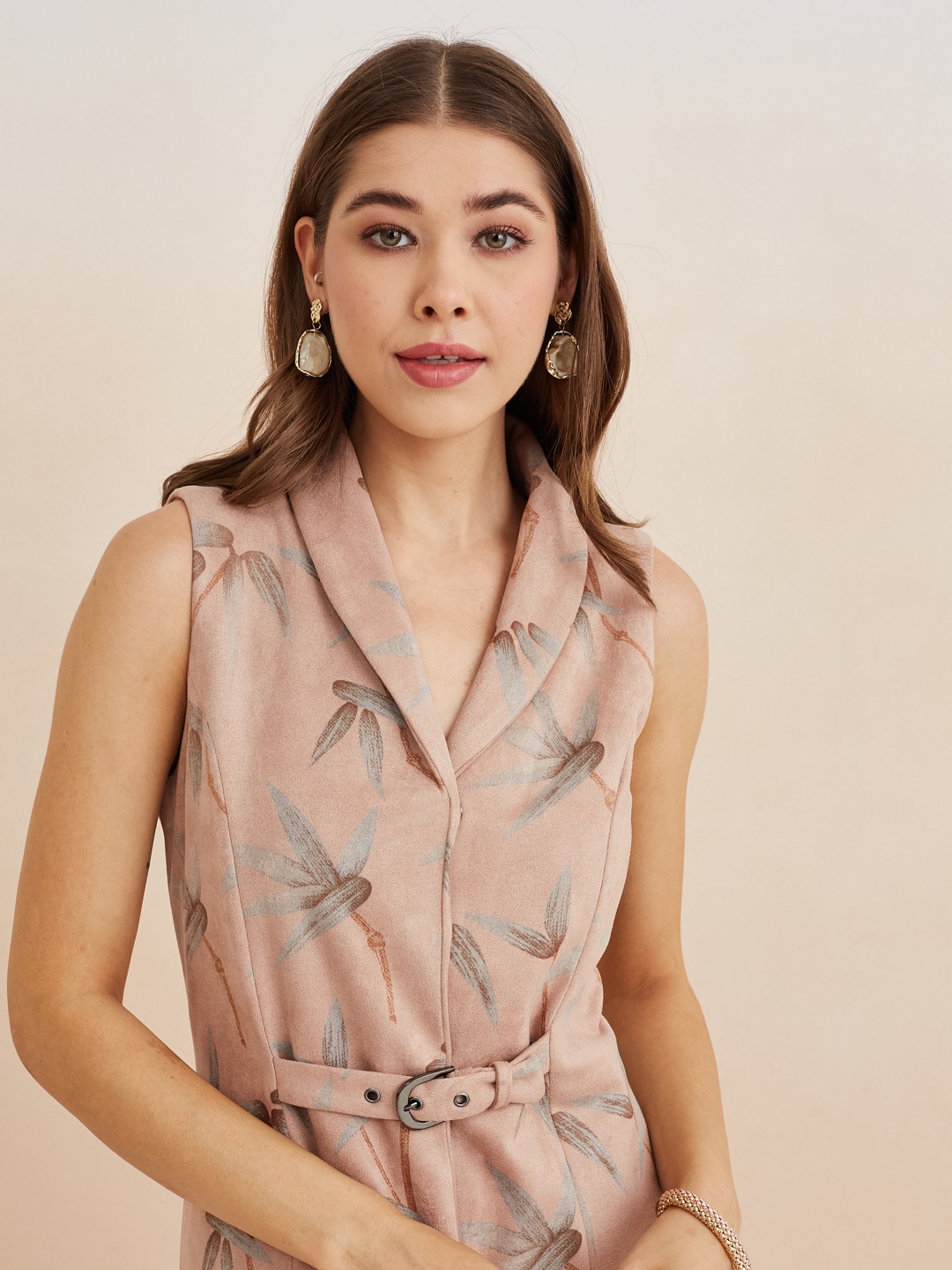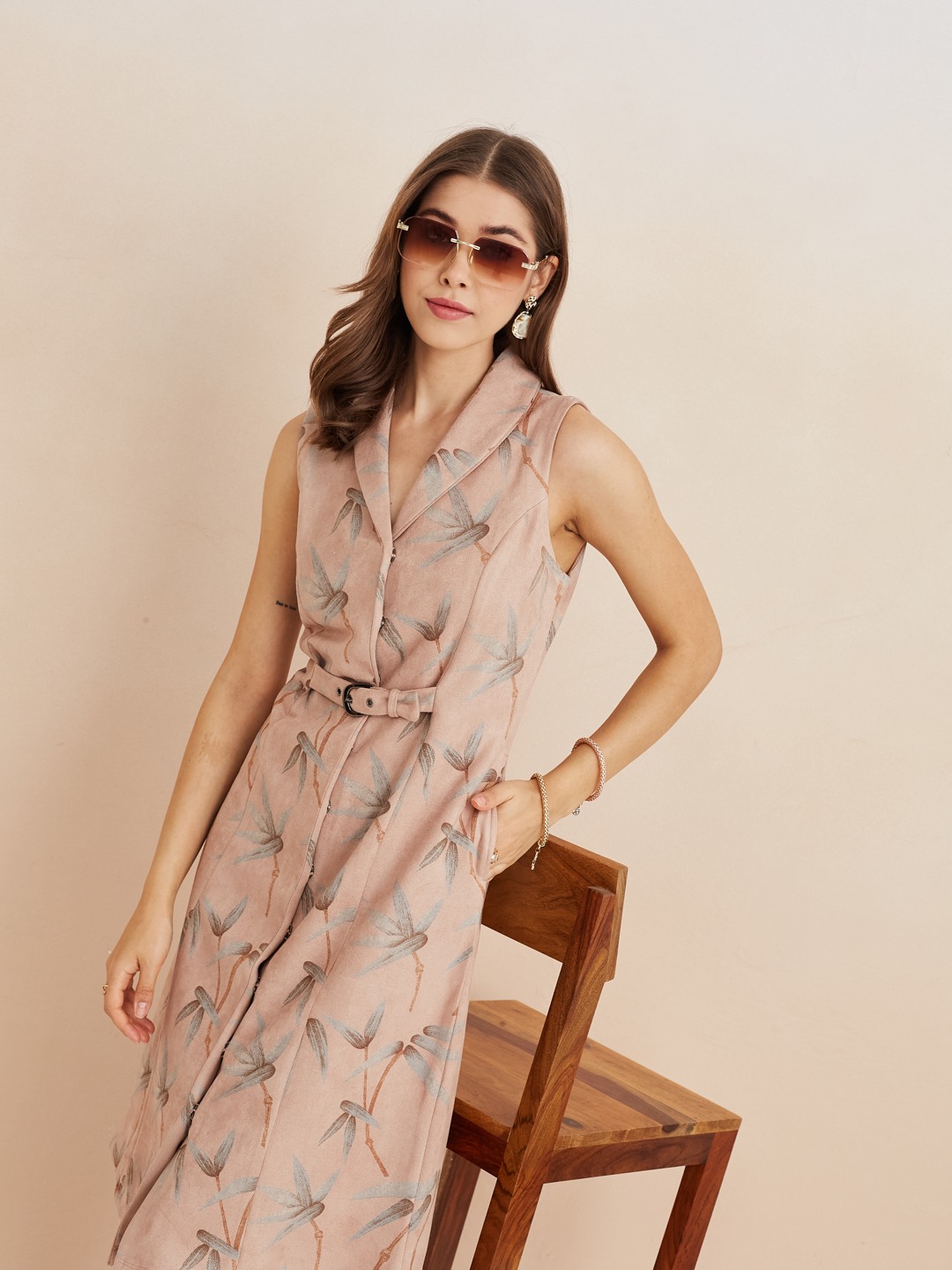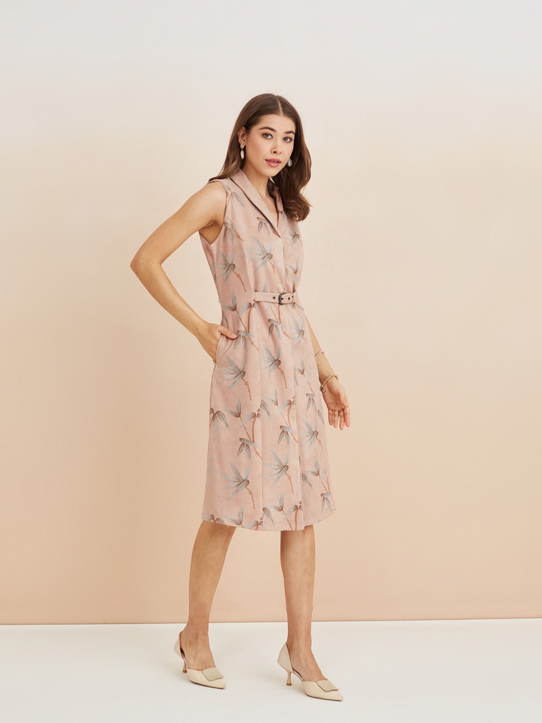 Latin Quarters Women'S Beige Collar Neck Sleeveless Printed Casual Shirt Dress