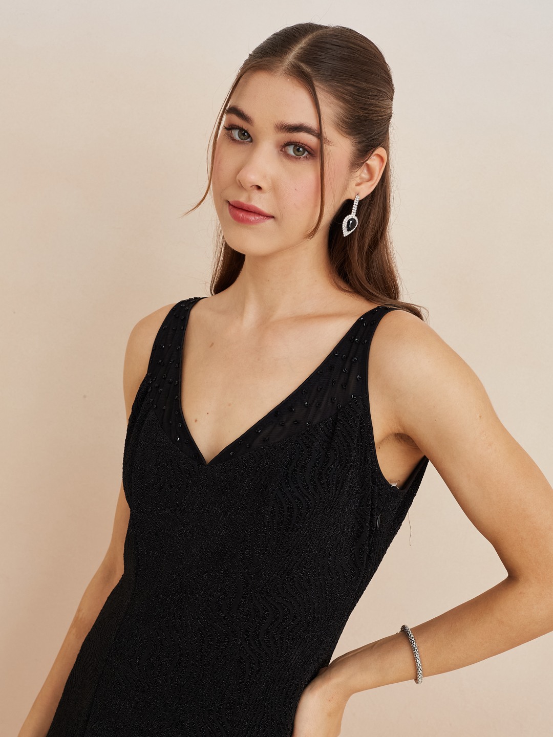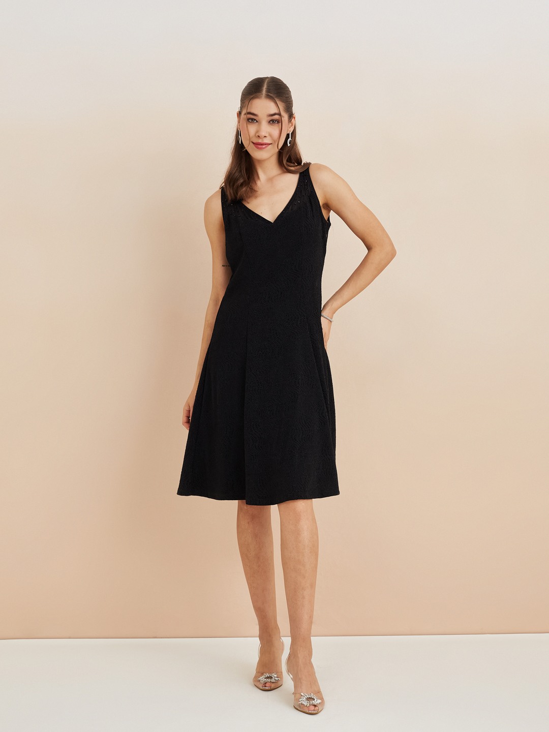 Latin Quarters Women'S Black V-Neck Sleeveless Solid Party Fit & Flare Dress