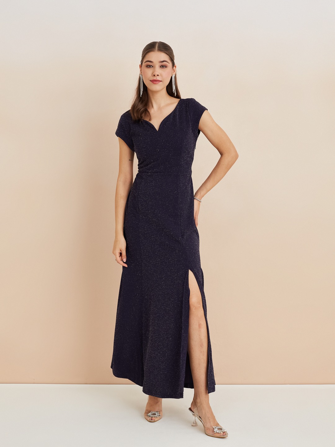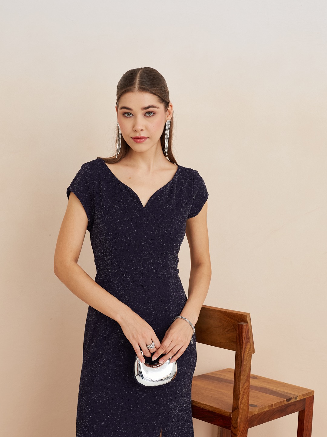 Latin Quarters Women'S Blue Sweatheart Neck Cap Sleeves Solid Party Bodycon Dress