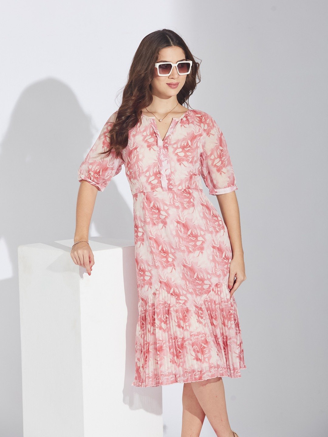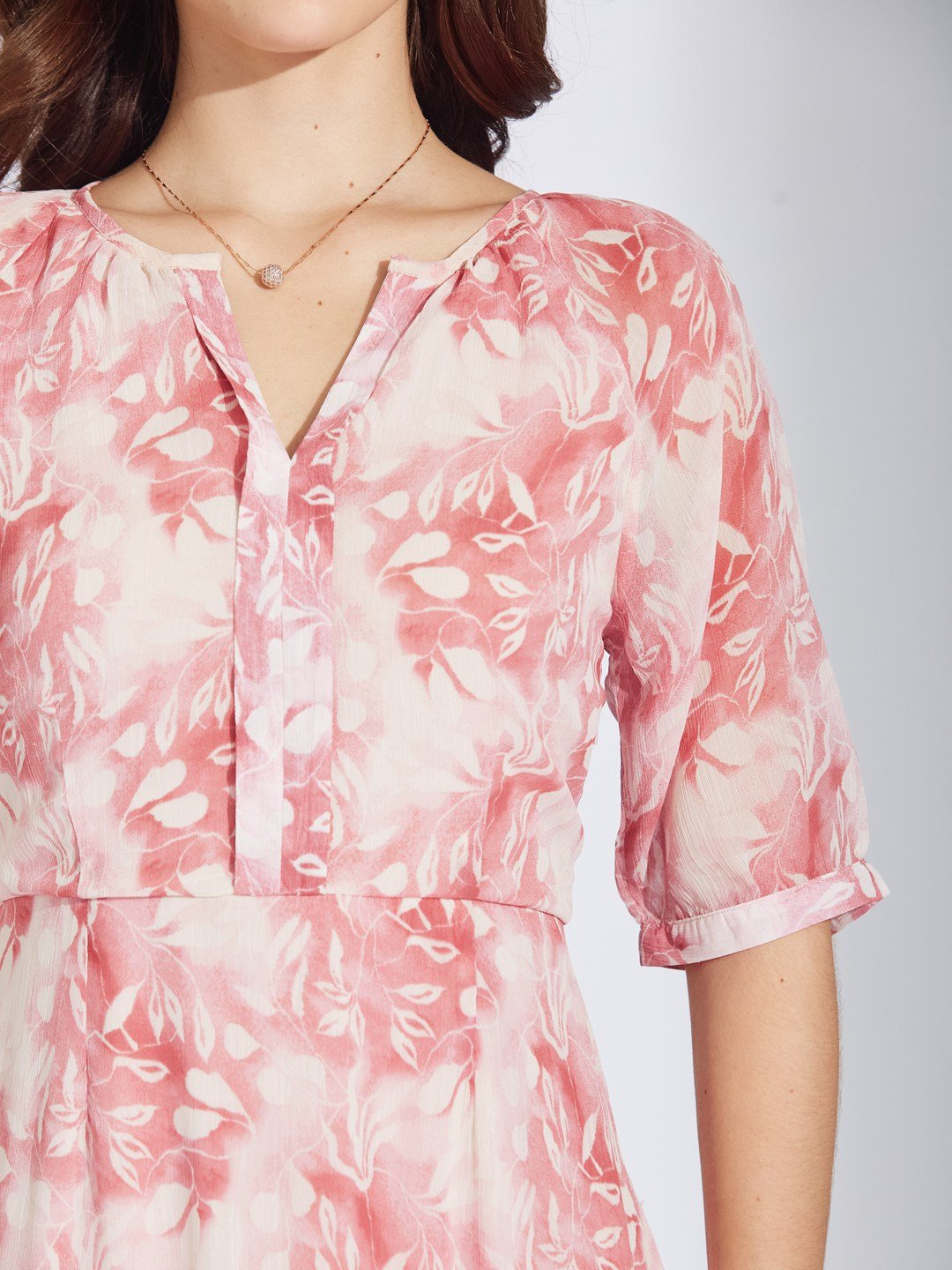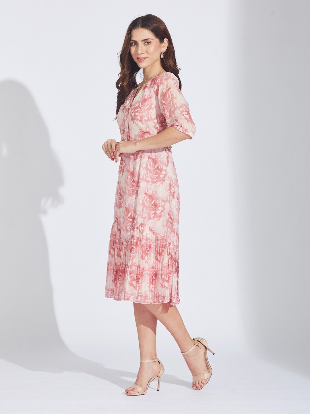 Latin Quarters Women'S Pink Printed Round Neck Half Sleeves Casual Fit & Flare Dress