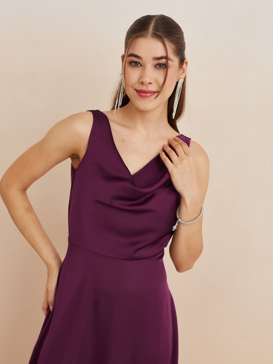 Latin Quarters Women'S Wine Cowl Neck Sleeveless Solid Party A-Line Dress