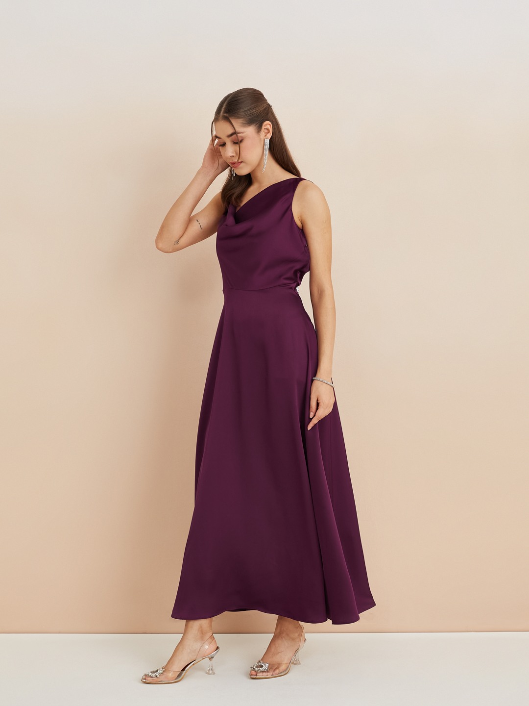 Home/Dresses/Latin Quarters/latin quarters women's wine cowl neck sleeveless solid party a-line dress