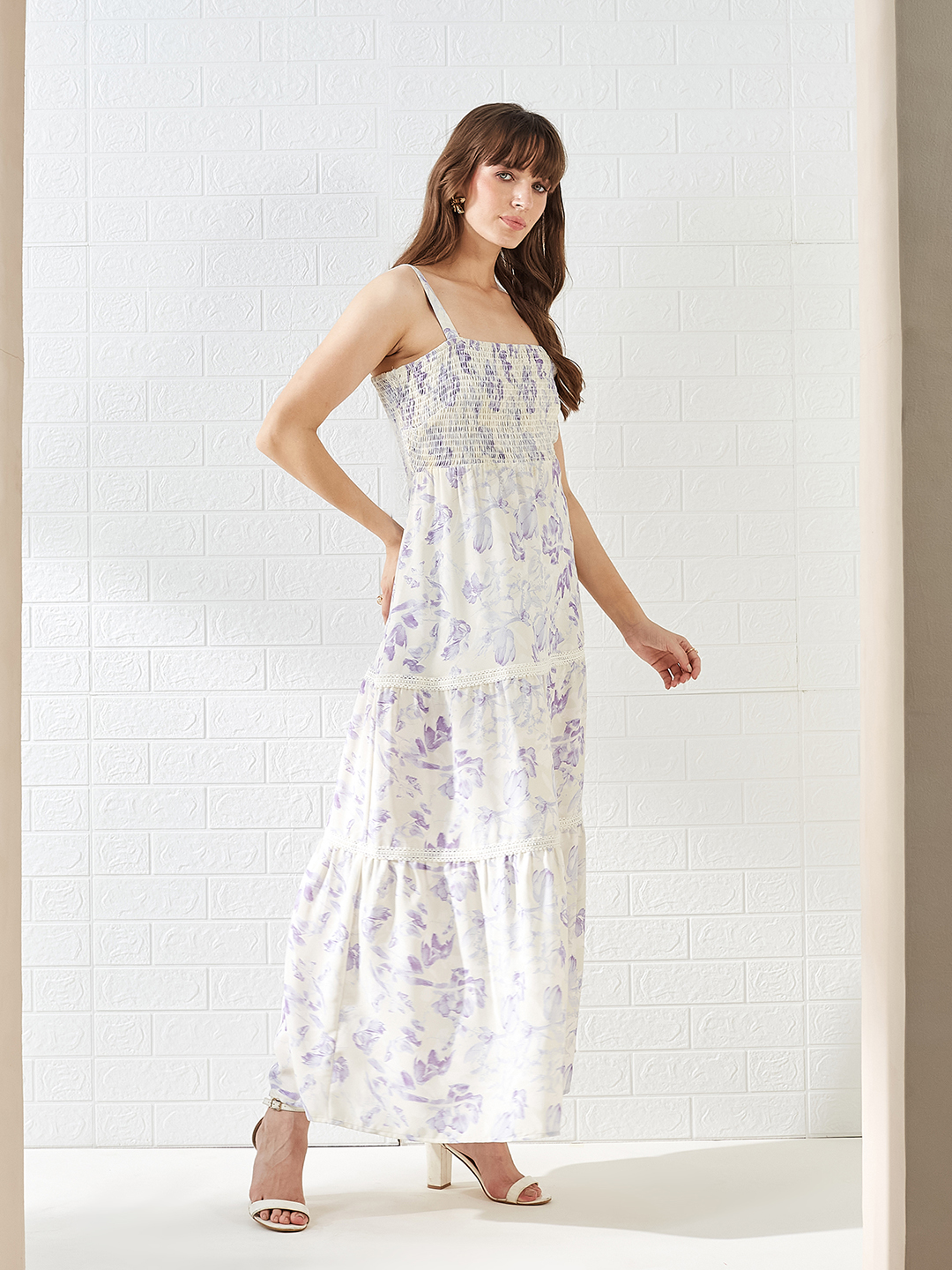 Latin Quarters Women White Printed Sleeveless Square Neck A-line Casual Dress