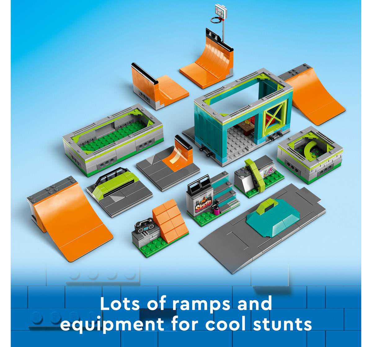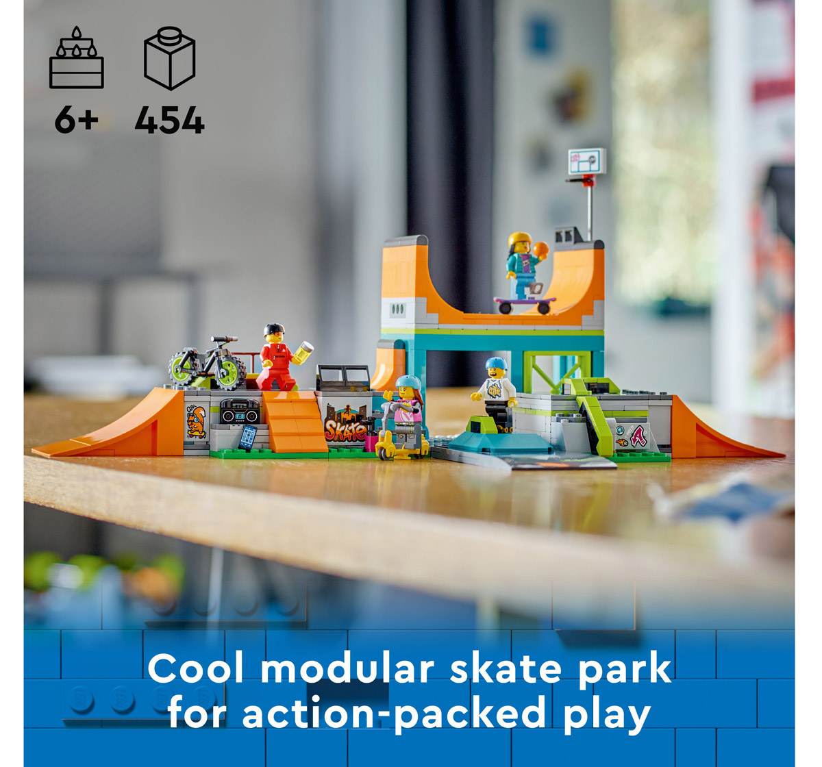 Kids and skate fans aged 6+ will love this LEGO City Street Skate Park set (60364). It’s packed with inspiration for imaginative play and comes with combinable ramp modules for different park configurations. The set also includes a toy BMX bike, skateboard, scooter, in-line skates, 4 skater minifigures and a LEGO Road Plate for connection to other sets from the LEGO City range.