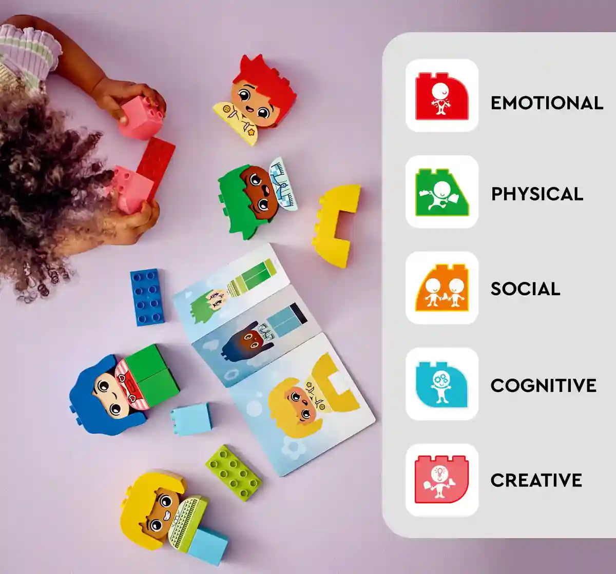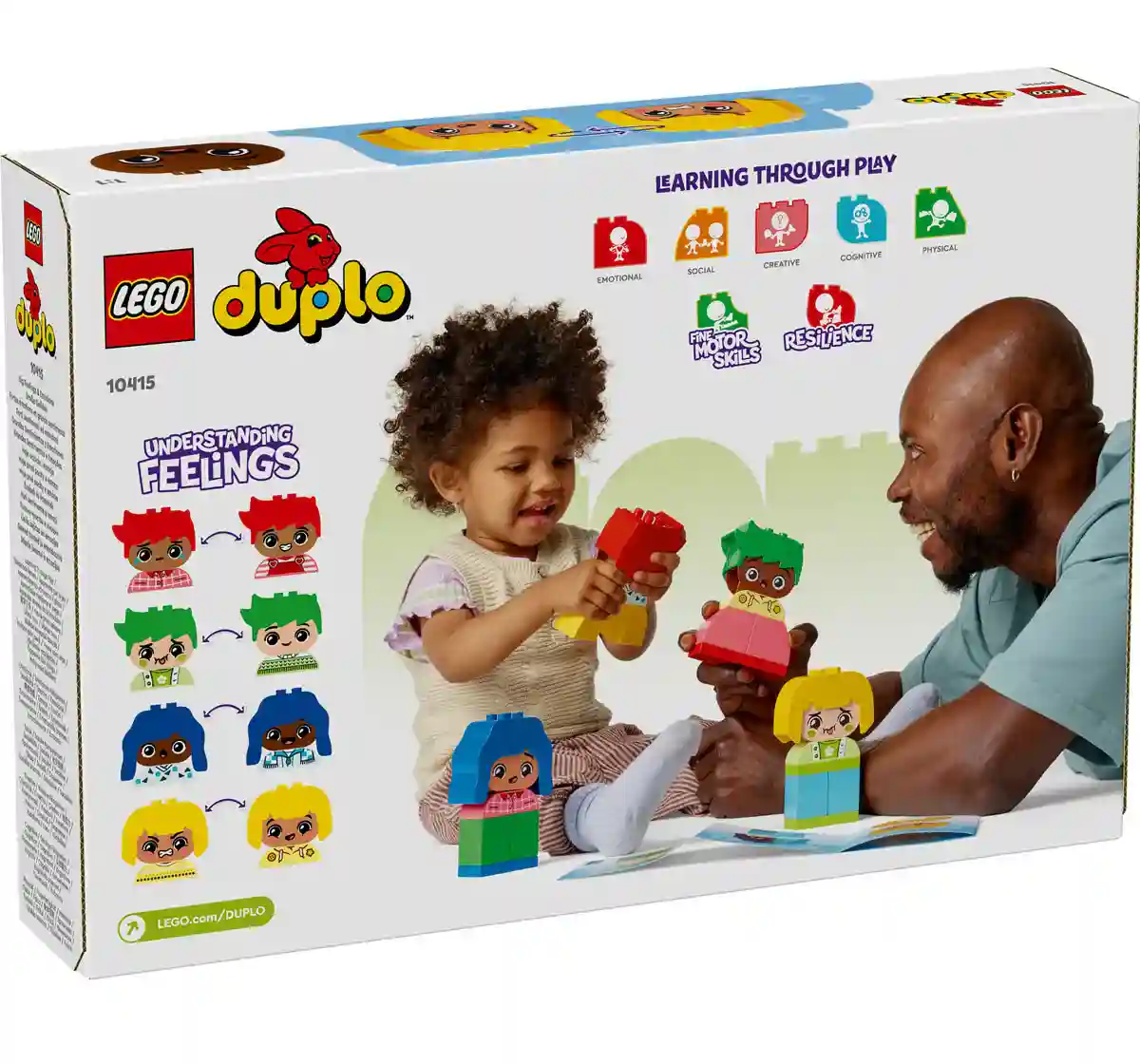 Help toddlers explore their emotional responses with the LEGO DUPLO My First Big Feelings & Emotions (10415) cognitive learning toy. It comes with 4 diverse characters, each with 2 different expressions, so preschool kids can change the toy faces to convey the way they are feeling. This LEGO DUPLO toy comes with bricks of interesting shapes that are engaging for little fingers to explore, putting open-ended creativity into the hands of toddlers.