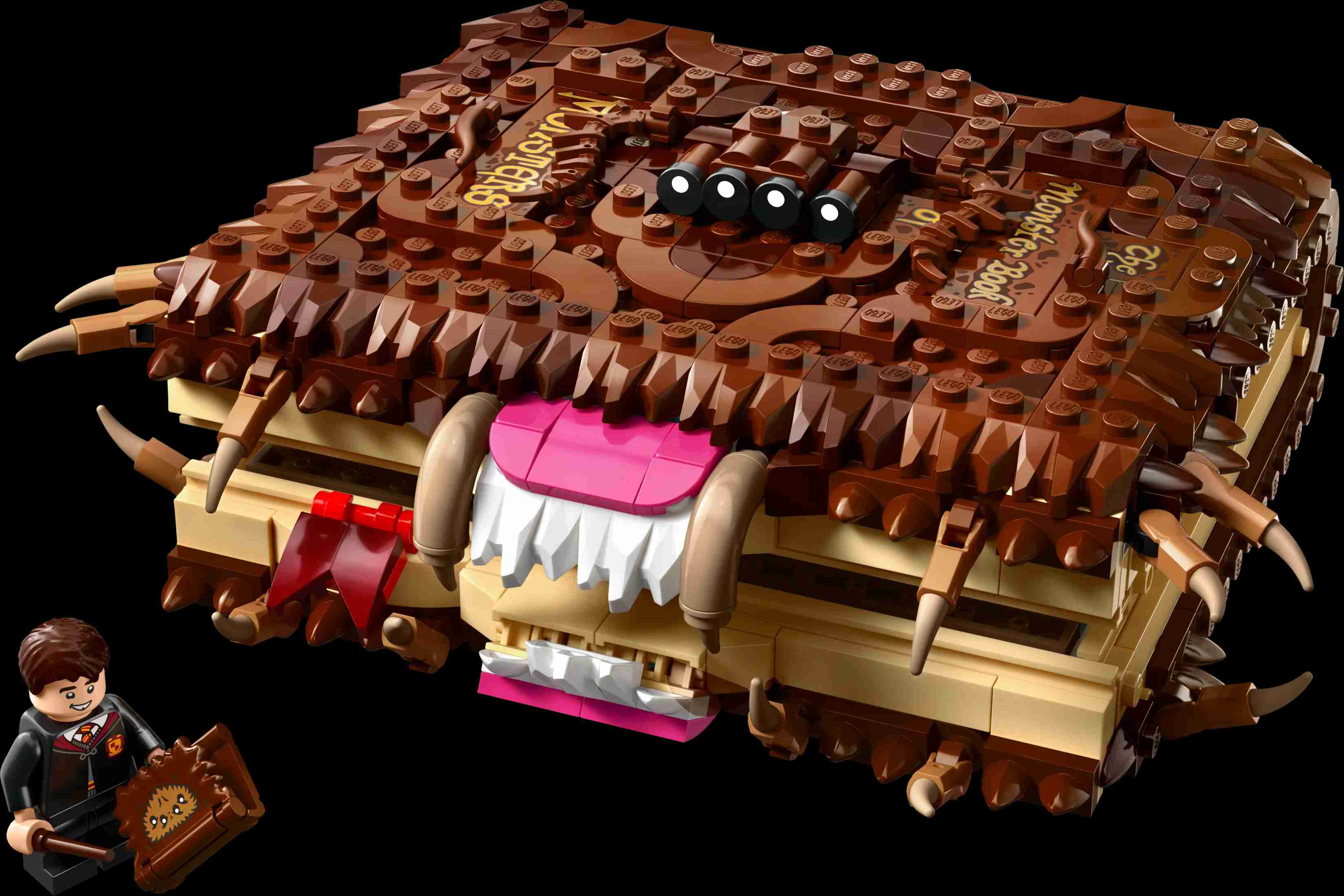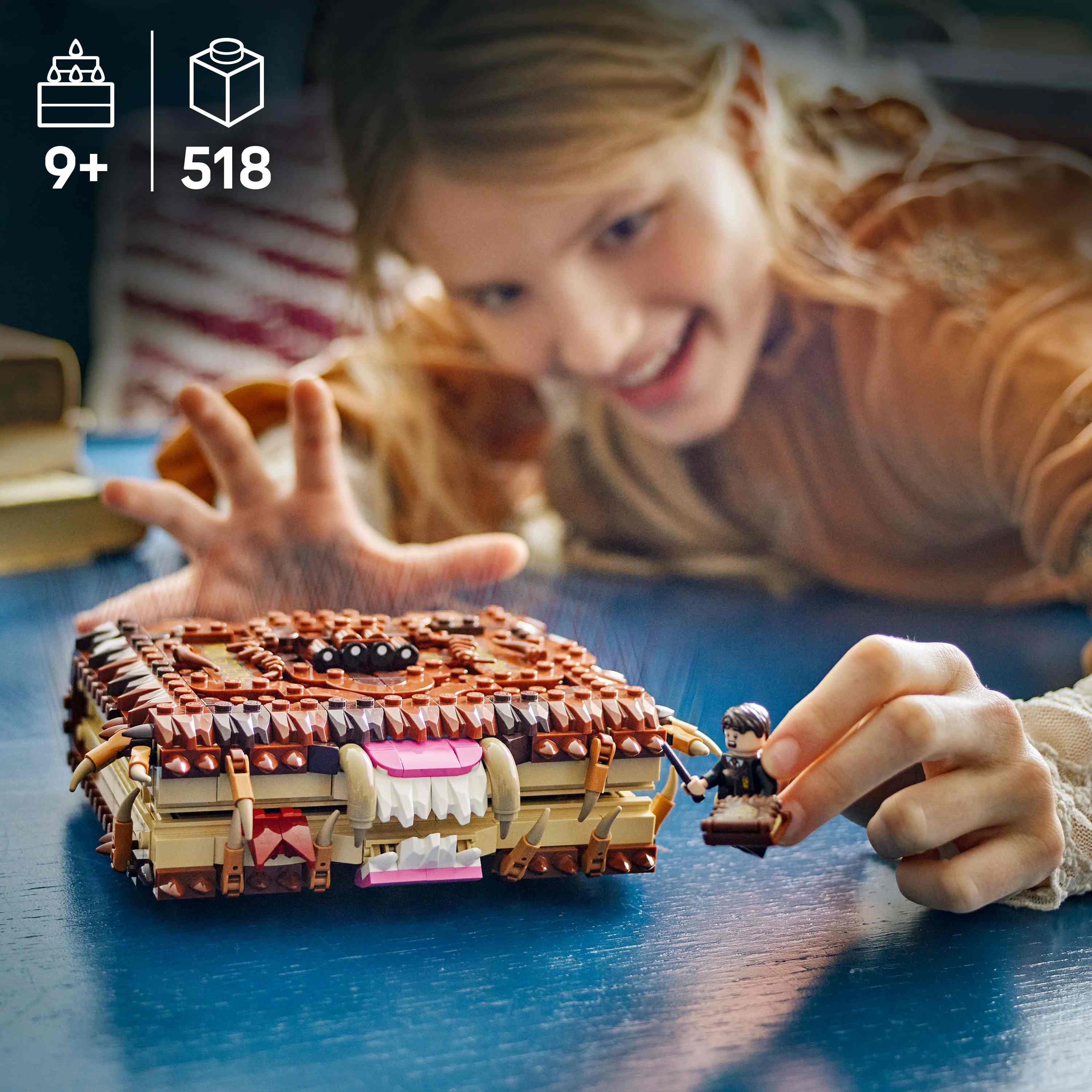Put the magic of Hogwarts lessons in the hands of your young wizard, witch or Muggle with the LEGO Harry Potter Chomping Monster Book of Monsters building toy (76449). The fun fantasy set features a detailed brick-built recreation of The Monster Book of Monsters, the sentient textbook used in the care of magical creatures. The model has hidden wheels and a pull-back function – so place it on a flat surface, pull back, let it go and watch it speed away with its mouth chomping.A wizard holiday gift or birthday present for boys, girls and any Harry Potter fans aged 9 and up, this kids’ building toy also includes a Neville Longbottom LEGO minifigure with a The Monster Book of Monsters accessory element. The buildable toy book and minifigure can be used with other LEGO Harry Potter collectible sets (sold separately) to give kids extra spellbinding play possibilities.