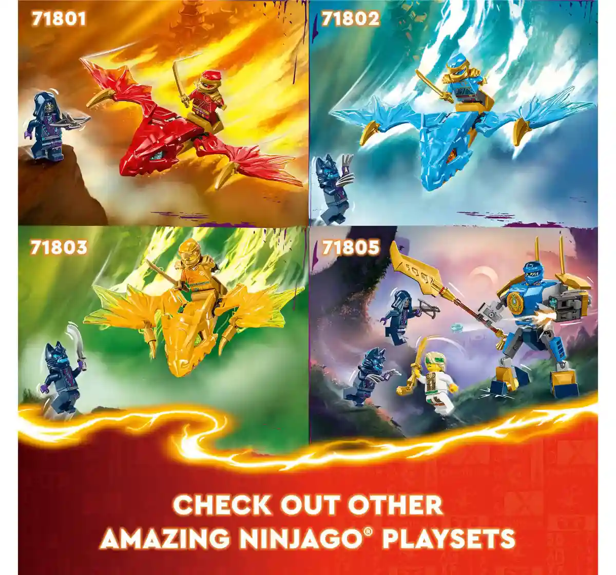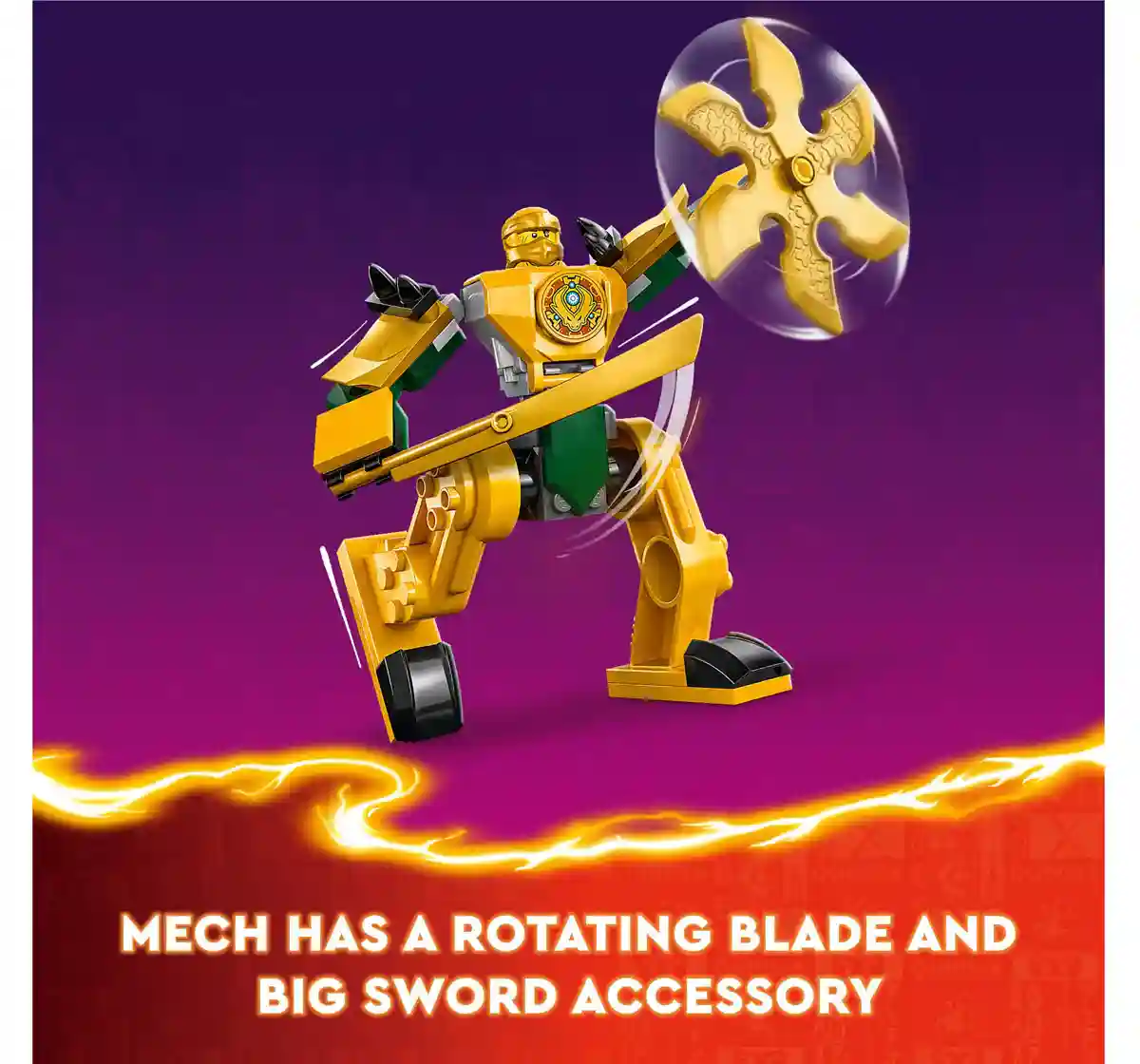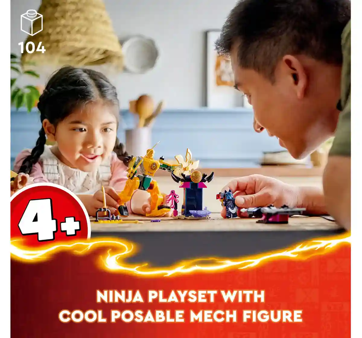 Arin’s Battle Mech (71804) ninja toy lets kids aged 4+ learn to build as they join in with their ninja heroes’ attempt to save their dragon friends. This role-play action toy includes an impressive mech figure to inspire kids to recreate exciting adventures from season 2 of the NINJAGO Dragons Rising TV show. This LEGO set comes with 2 minifigures: Arin with a katana accessory and a Wolf Mask Warrior with a sword accessory. Arin fits in the posable mech figure, which wields a large sword and rotating blade, while the Wolf Mask Warrior can fly in a glider that has posable wings, a disc shooter and 2 spears. There’s also a brick-built crystal cave with a mallet of shattering inside and a weapons rack with 2 golden katana sword accessories.