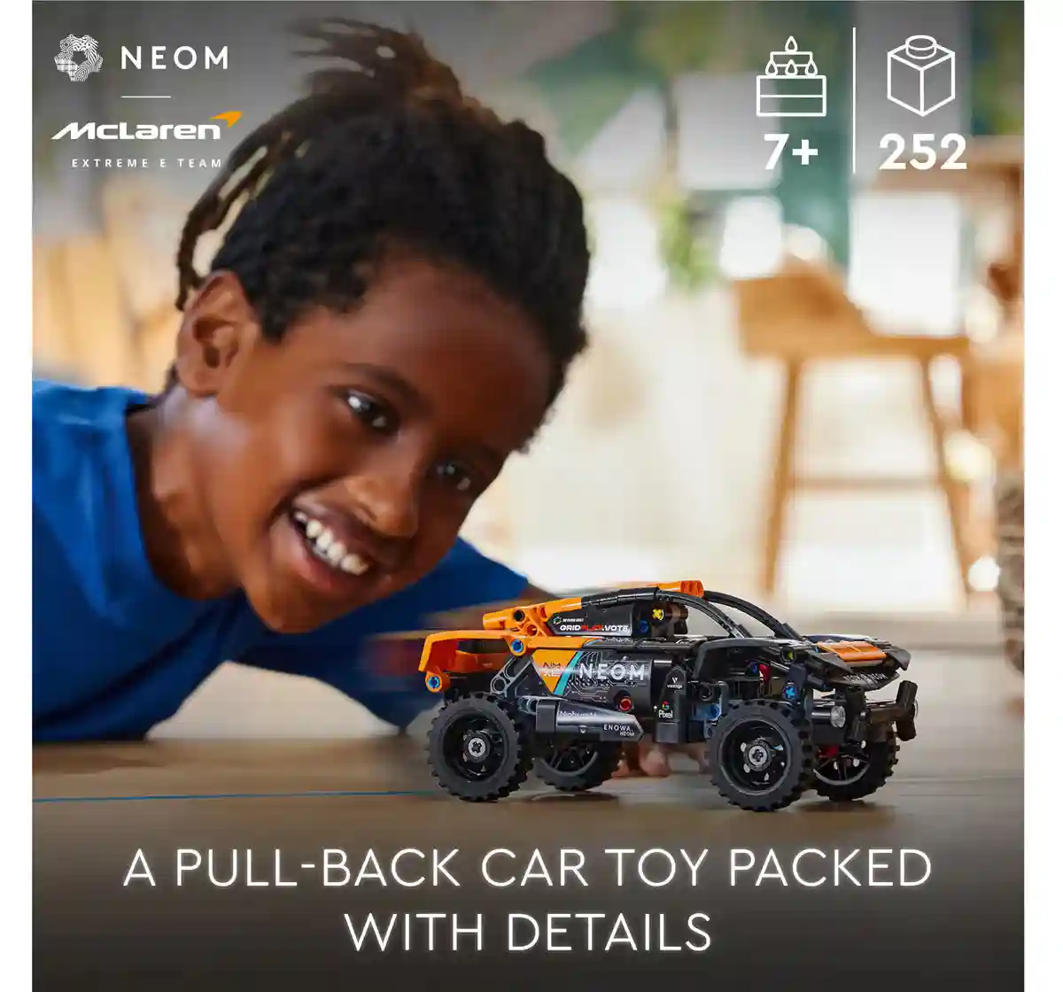 Looking for an exciting gift for kids who love race car toys? This pull-back car for boys and girls aged 7+ delivers thrills at every turn. First youngsters can enjoy building the LEGO Technic NEOM McLaren Extreme E Race Car (42166). Then it’s time to have fun racing the car using the pull-back action. This car toy captures the character of the real-life model and features chunky off-road tires, an eye-catching color scheme and authentic partner logos. Kids will love imagining what it’s like to race in remote parts of the world like a real Extreme E driver.