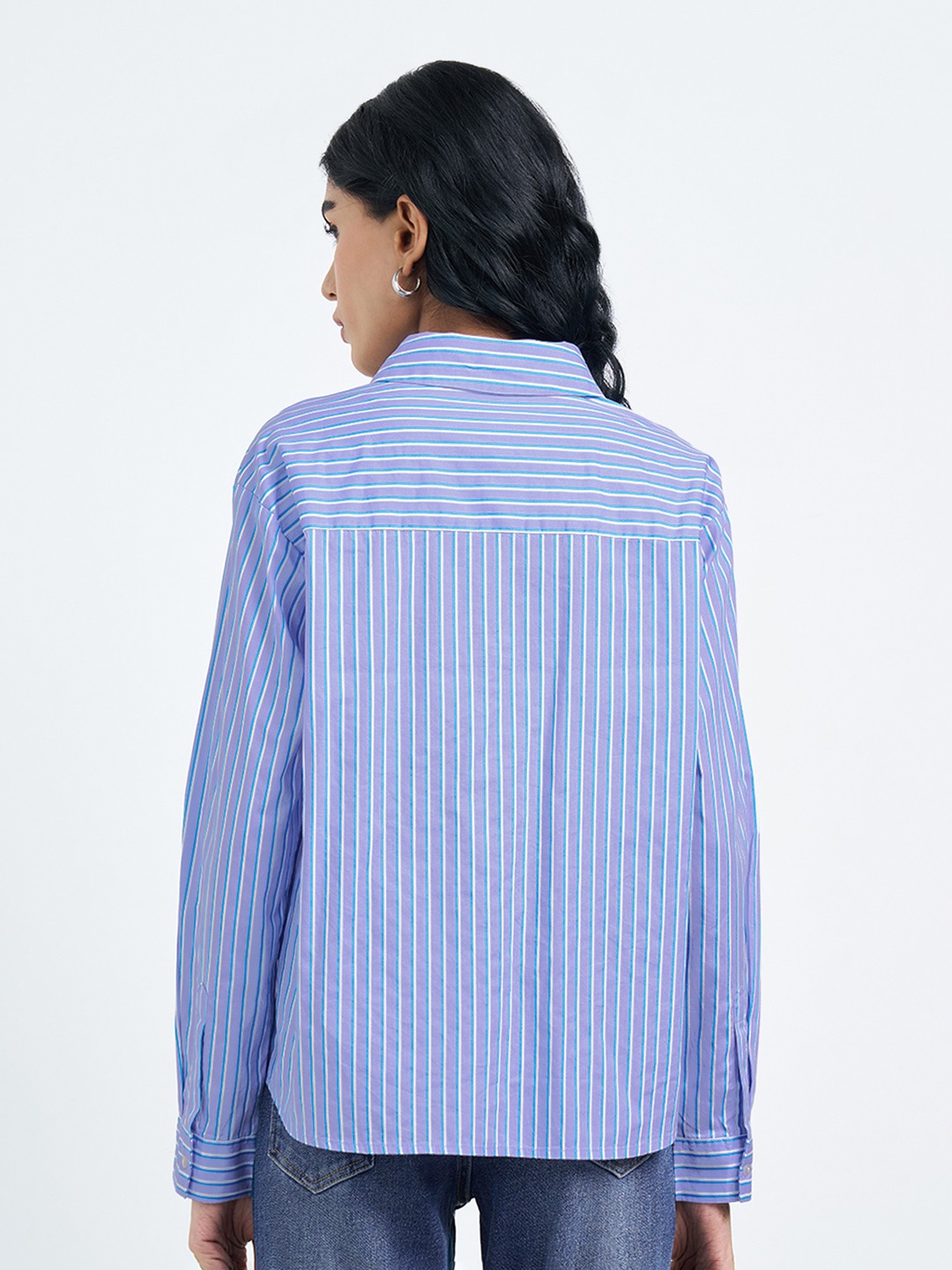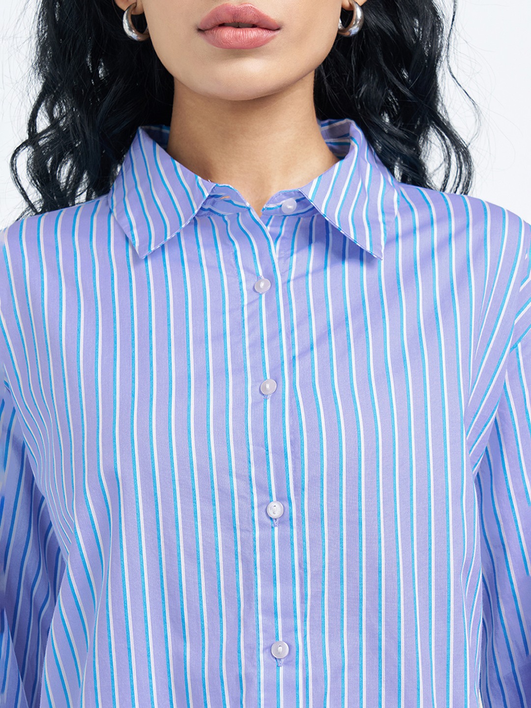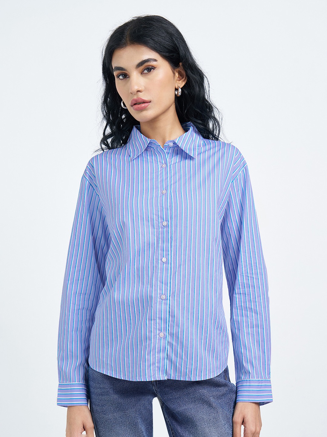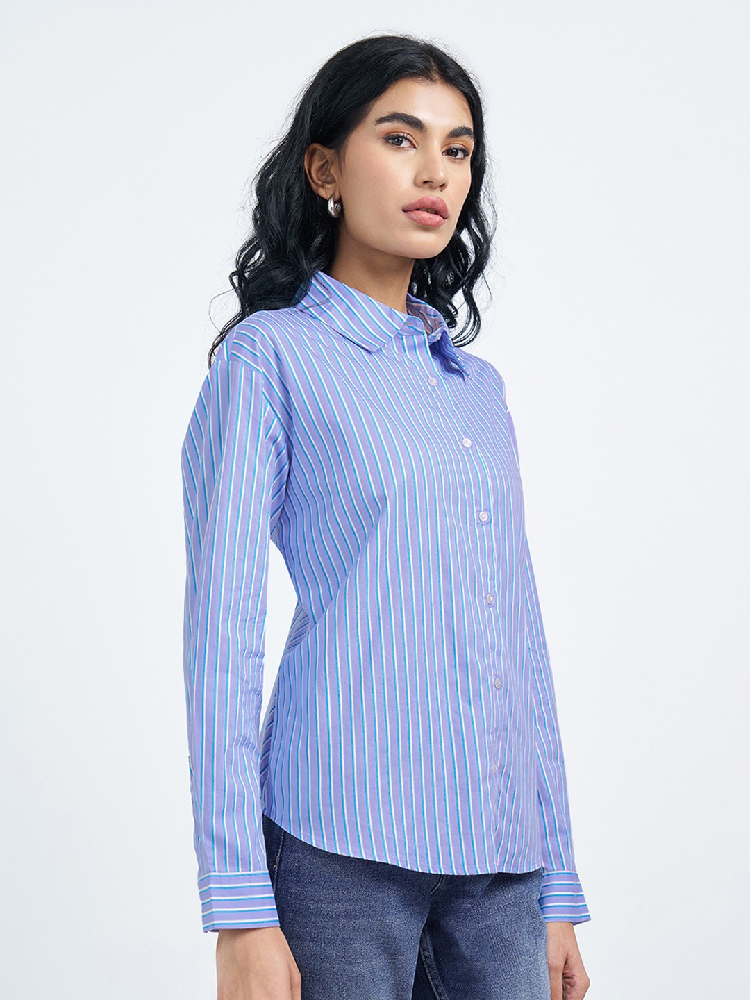 Sharp shirting with a playful twist in a fresh palette. This long-sleeve shirt features a classic collar, button-through front and a tailored silhouette with clean stripes. Clean, versatile and directional, it adapts effortlessly across styling moods.