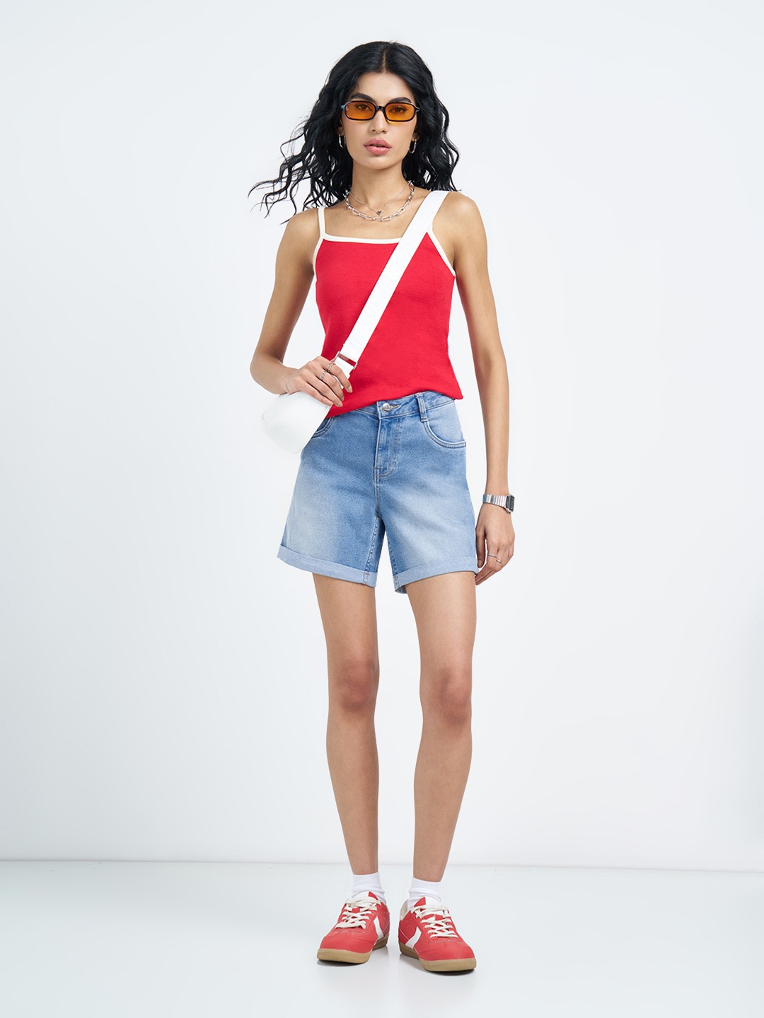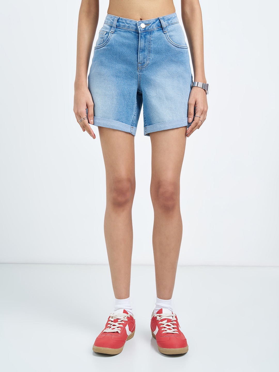 Home/Shorts/SF JEANS by Pantaloons/light blue washed cuffed denim shorts