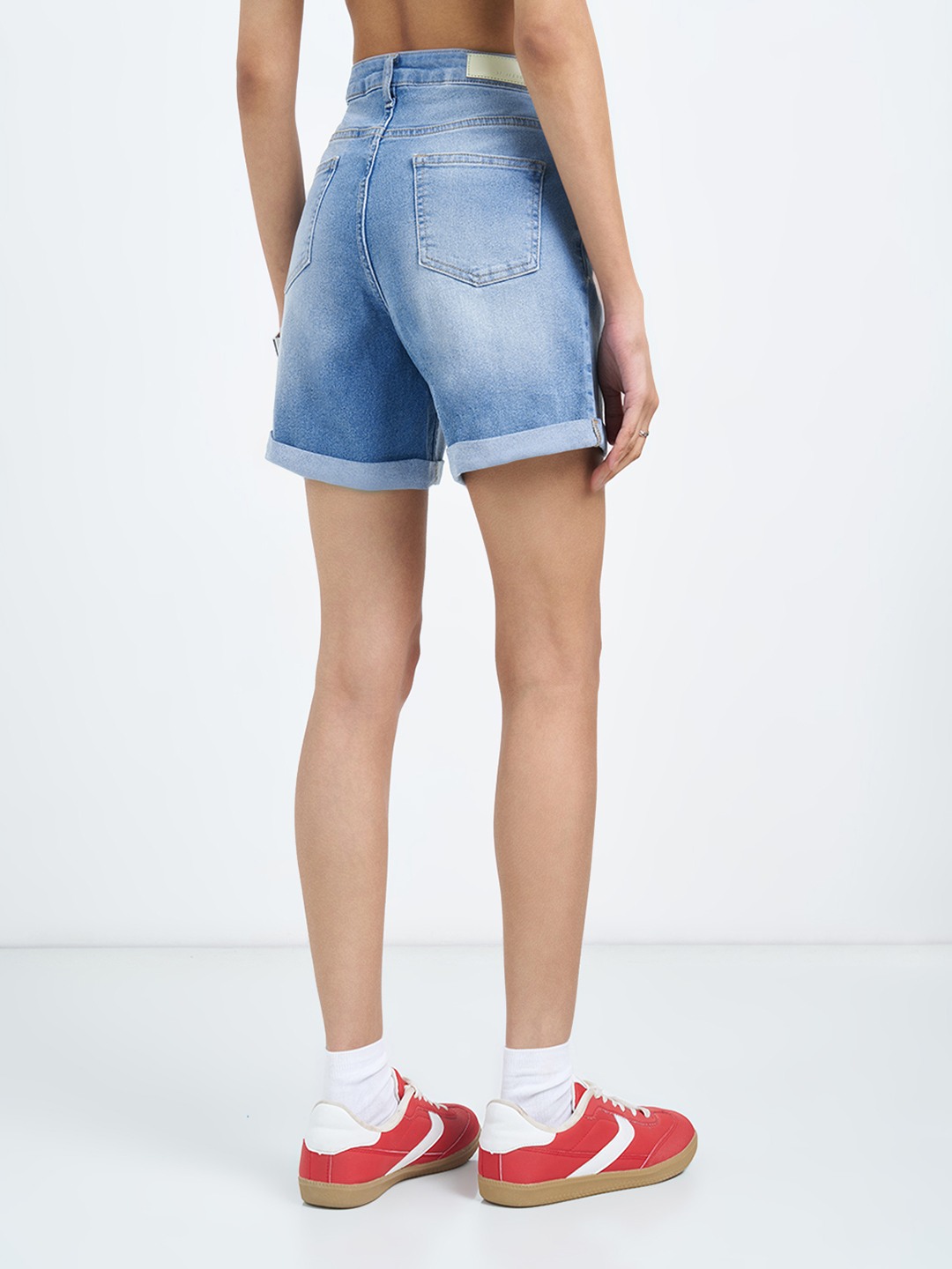 Light Blue Washed Cuffed Denim Shorts