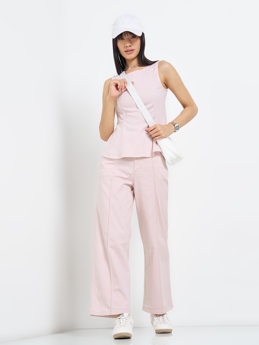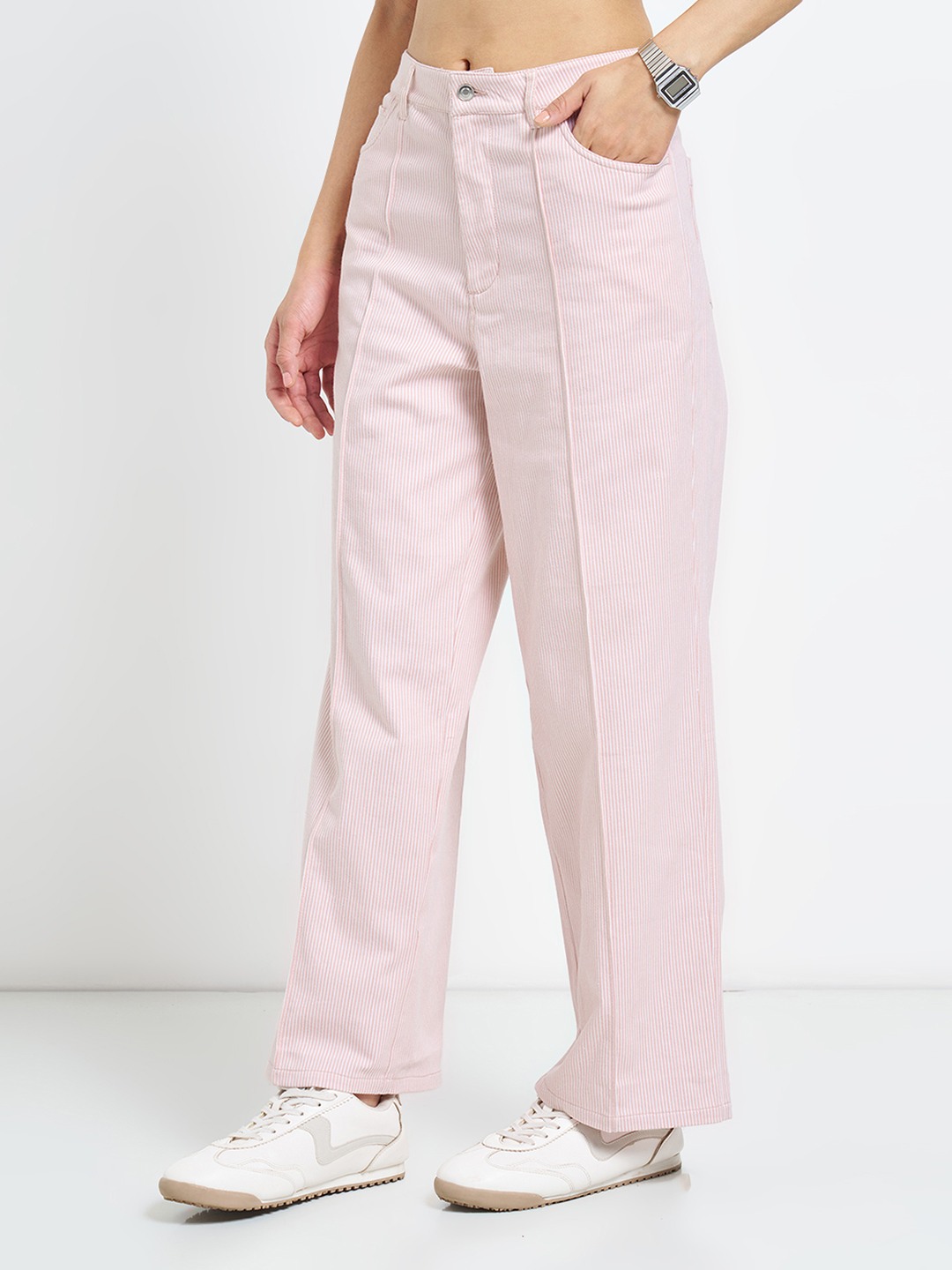 Softly structured with a refined edge, these straight-fit jeans bring tailored polish into everyday dressing. Designed with all-over stripes, they feature a front crease that sharpens the leg line, complemented by classic five-pocket styling, belt loops and a clean straight silhouette. The denim adds depth while keeping the overall look modern and composed.