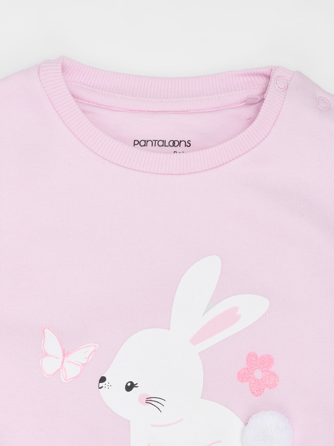 Home/Sweatshirts/Pantaloons Baby/lilac bunny print sweatshirt with ruffle detail