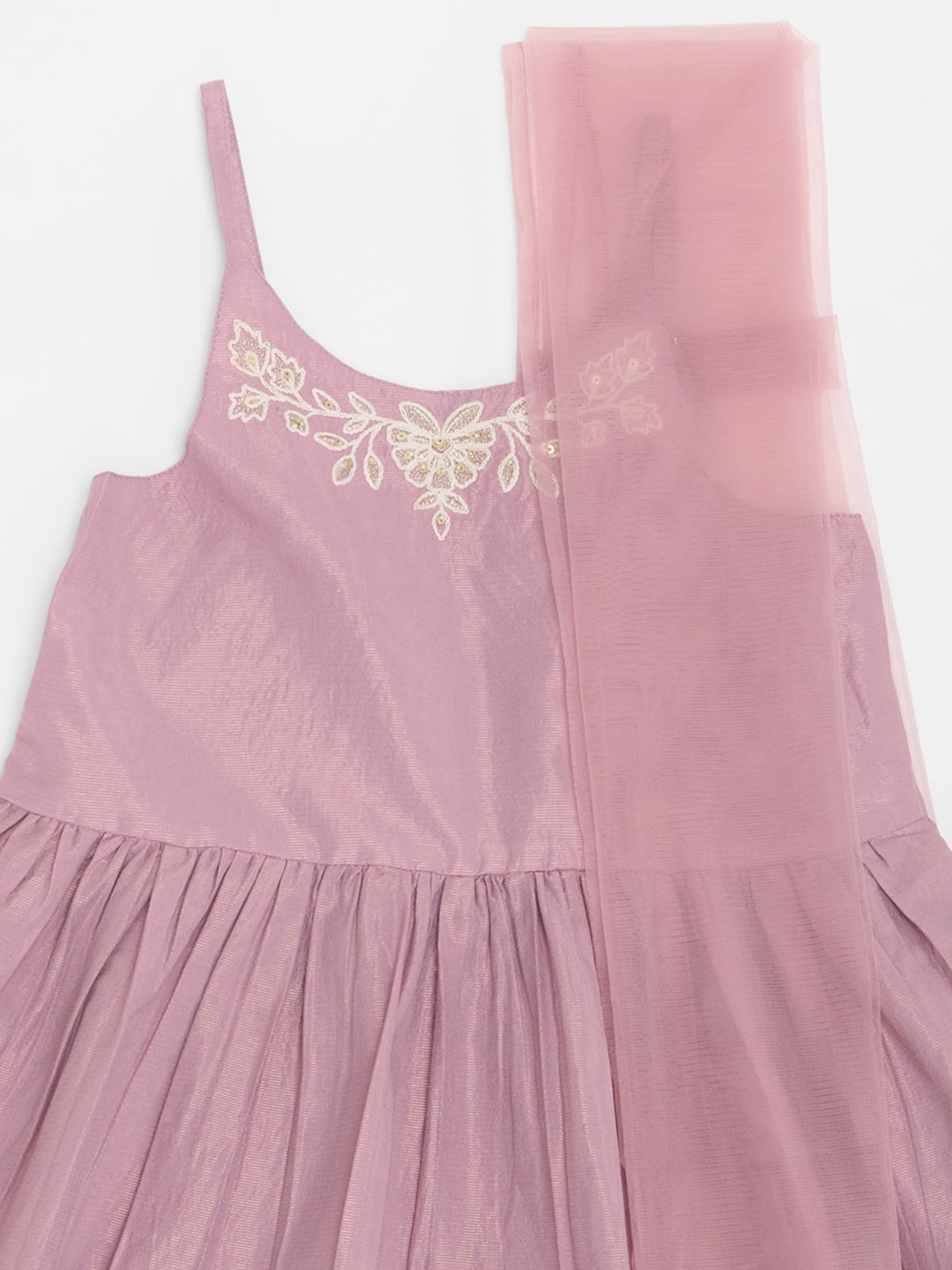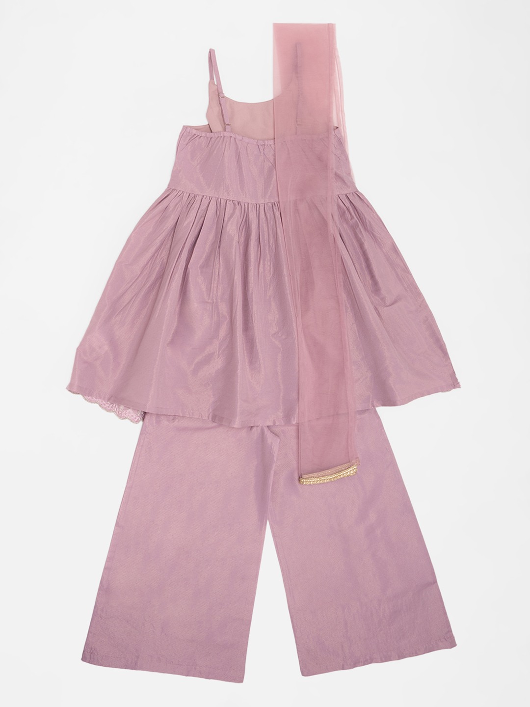 Lilac Embroidered Kurta Wide-Leg Pants & Sheer Dupatta Set
