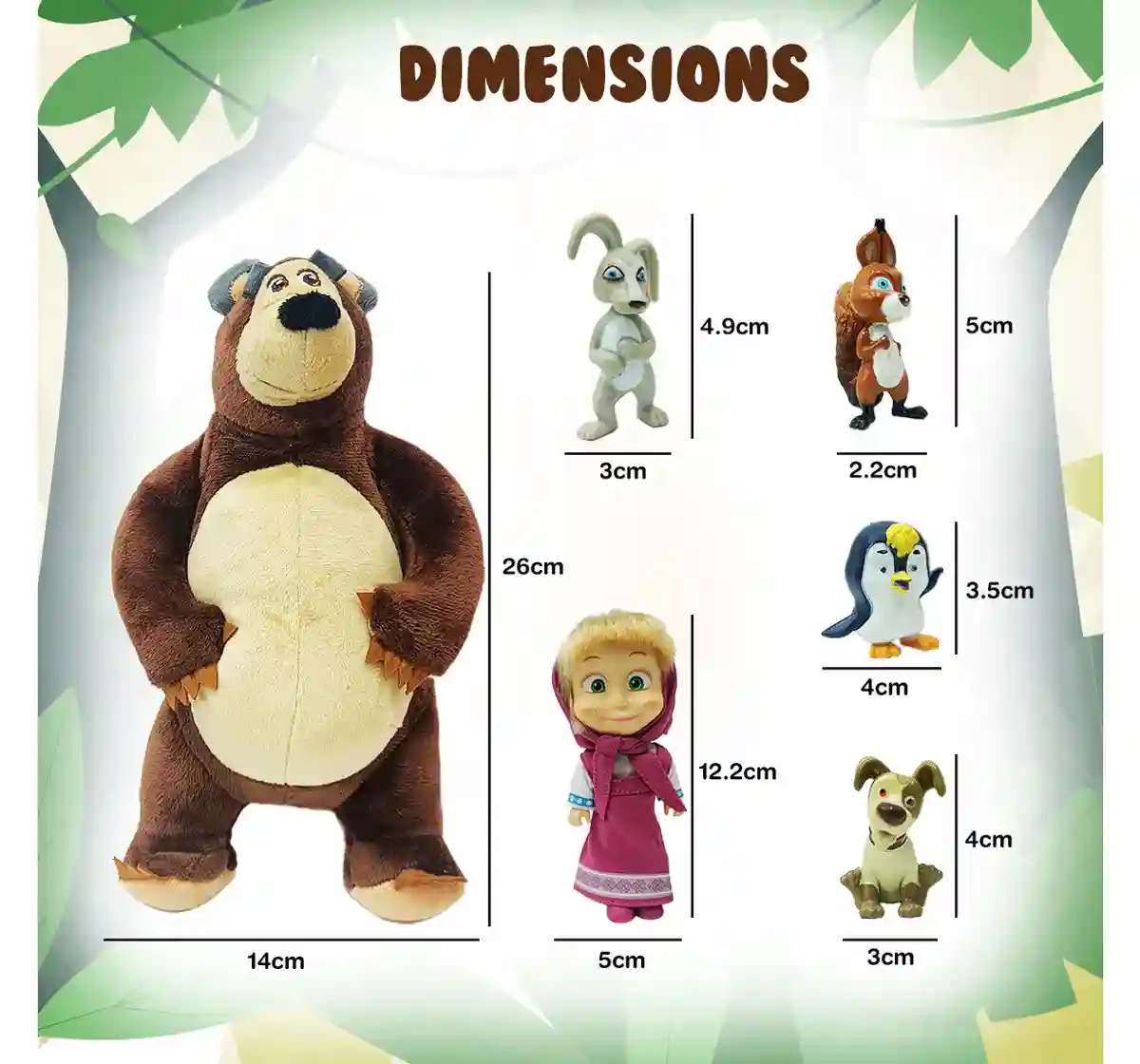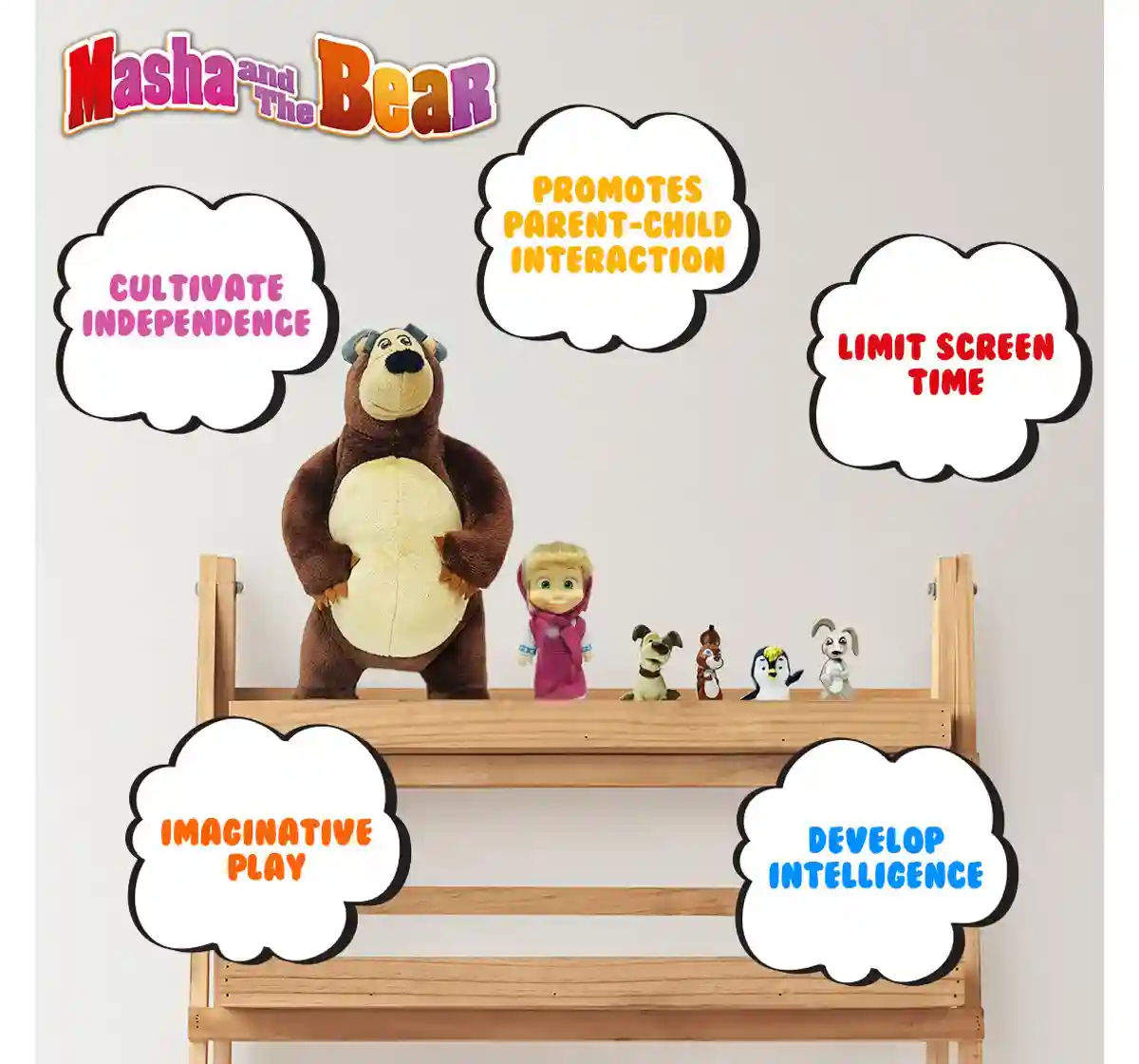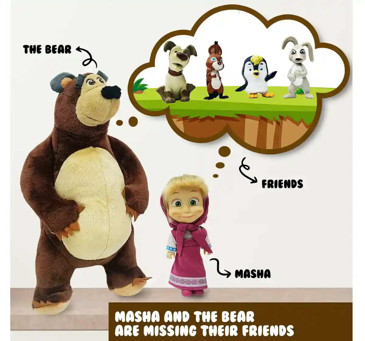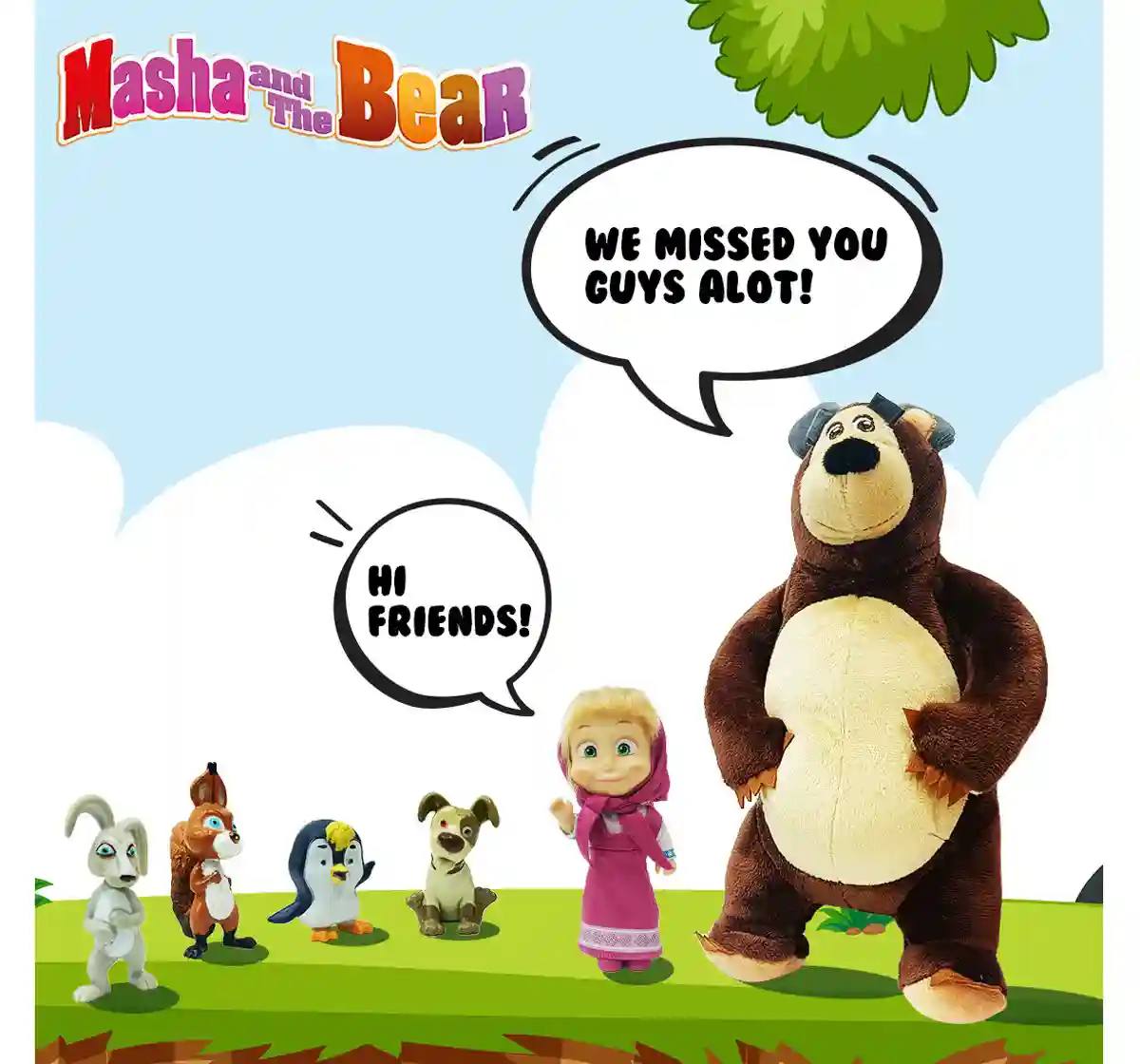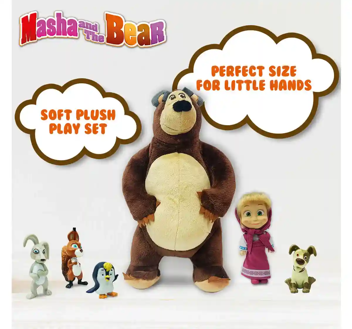The Masha and The Bear Simba Set is a delightful ensemble comprising a plush bear, doll, and various animals, offering endless imaginative adventures for kids. Featuring vibrant multicolored designs, this set is crafted to engage young minds in interactive play. Each piece is made with soft, cuddly materials, ensuring comfort during playtime. Suitable for children aged 3 years and above, this set sparks creativity and encourages storytelling, making it a perfect addition to any young child's toy collection.