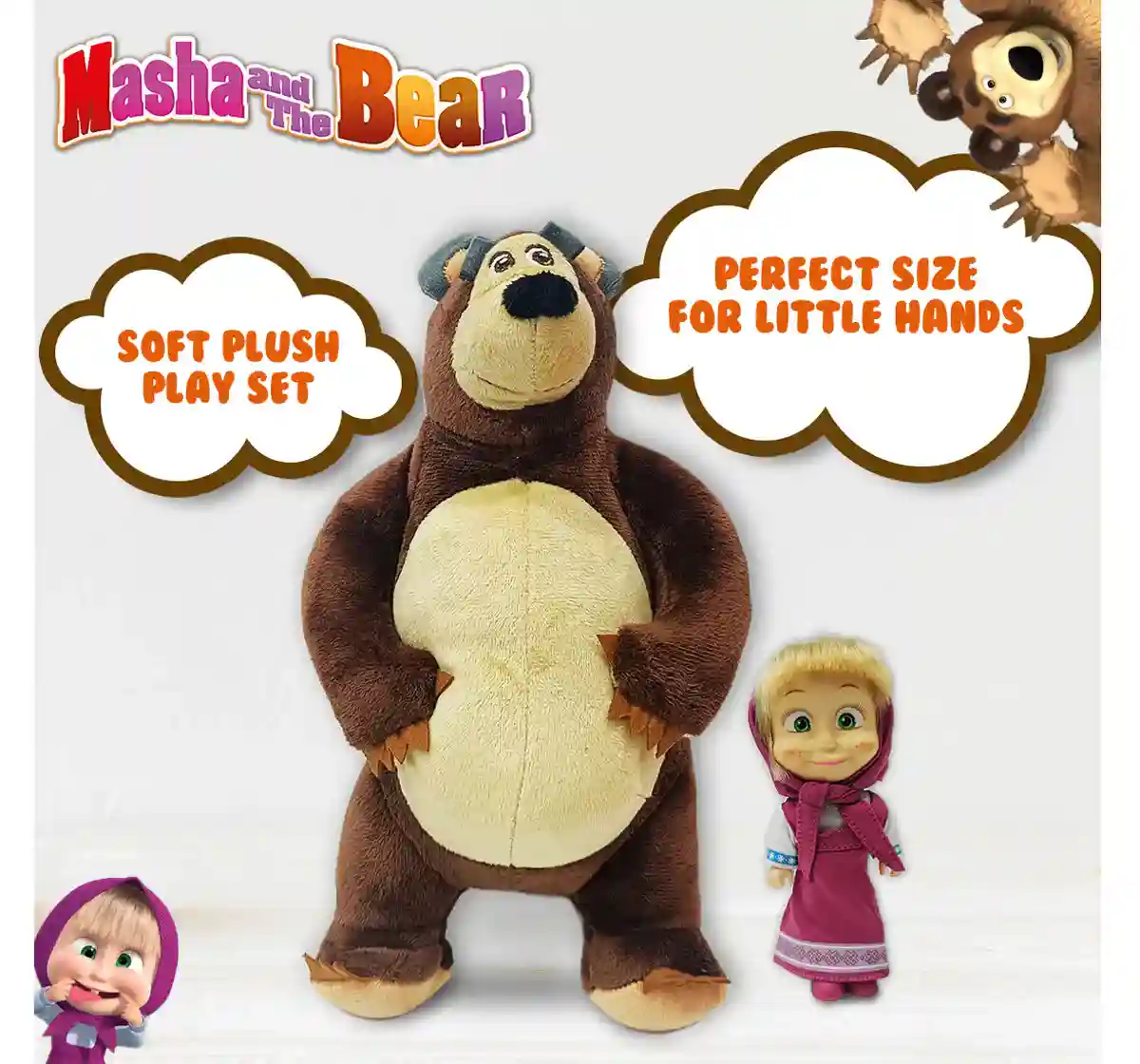 The Masha and The Bear Simba Set is a delightful addition to any child's toy collection. This set includes a plush bear and doll, featuring vibrant multicolored designs. Made from soft and huggable material, it's perfect for cuddling and imaginative play. Suitable for kids aged 3 years and above, this set sparks creativity and brings the beloved characters from Masha and the Bear to life in your child's playtime adventures.