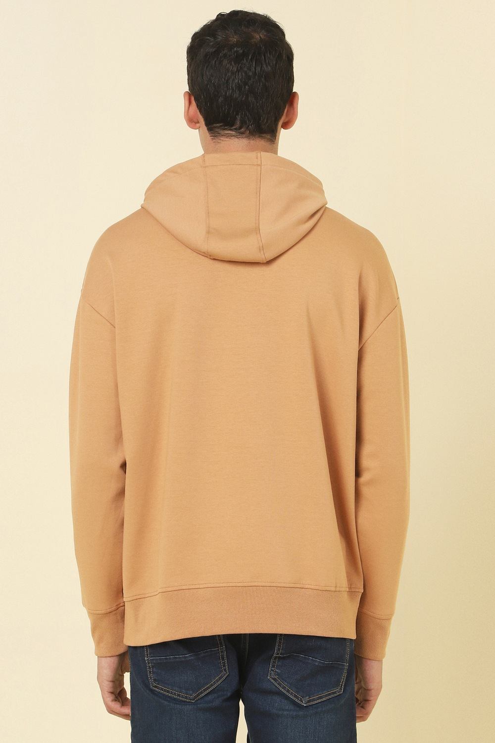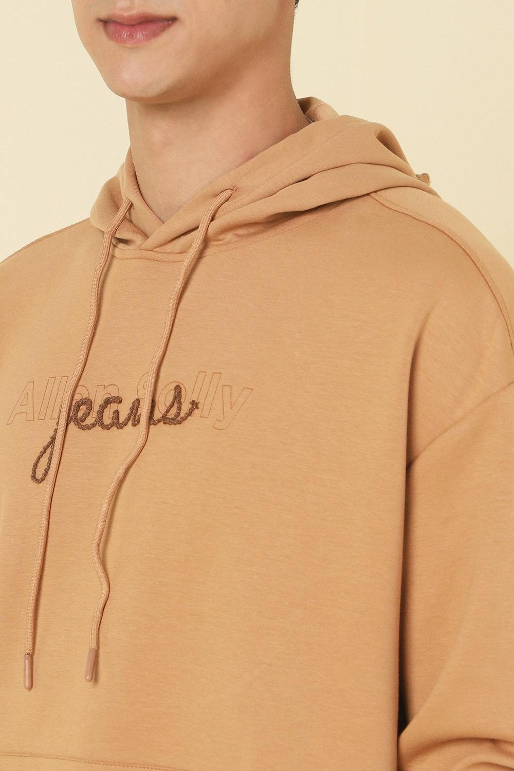 Experience casual comfort with the Allen Solly sweatshirt in a trendy beige hue. Crafted from a soft cotton and polyester blend, this hooded piece features a striking graphic print that adds a modern touch to your look. Perfect for laid-back outings or lounging at home, this sweatshirt combines style and functionality, making it an essential addition to your wardrobe. Embrace effortless style with this versatile piece today.