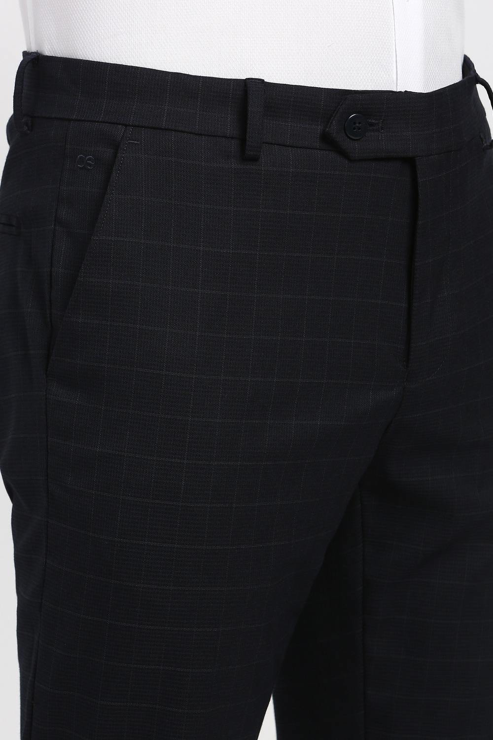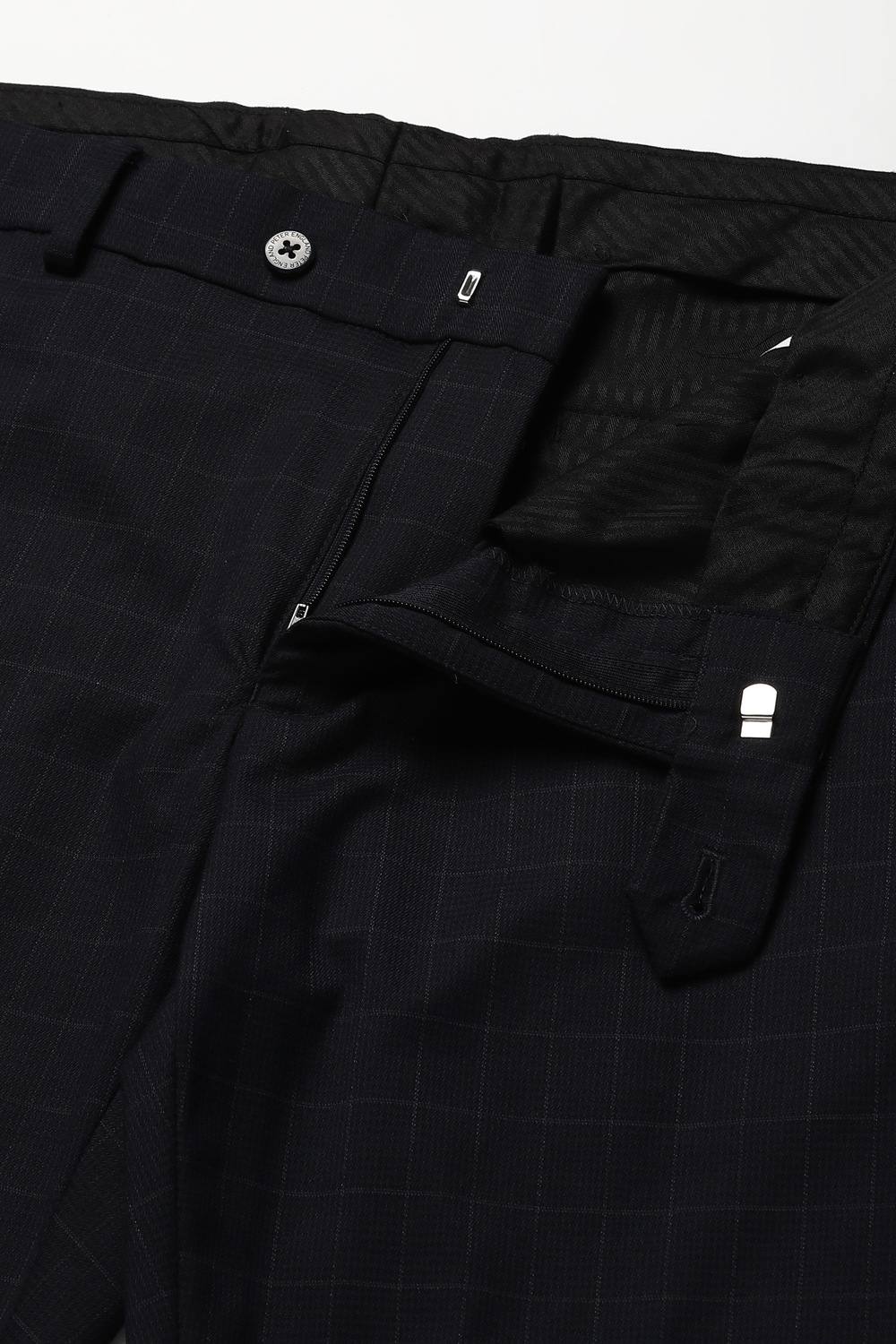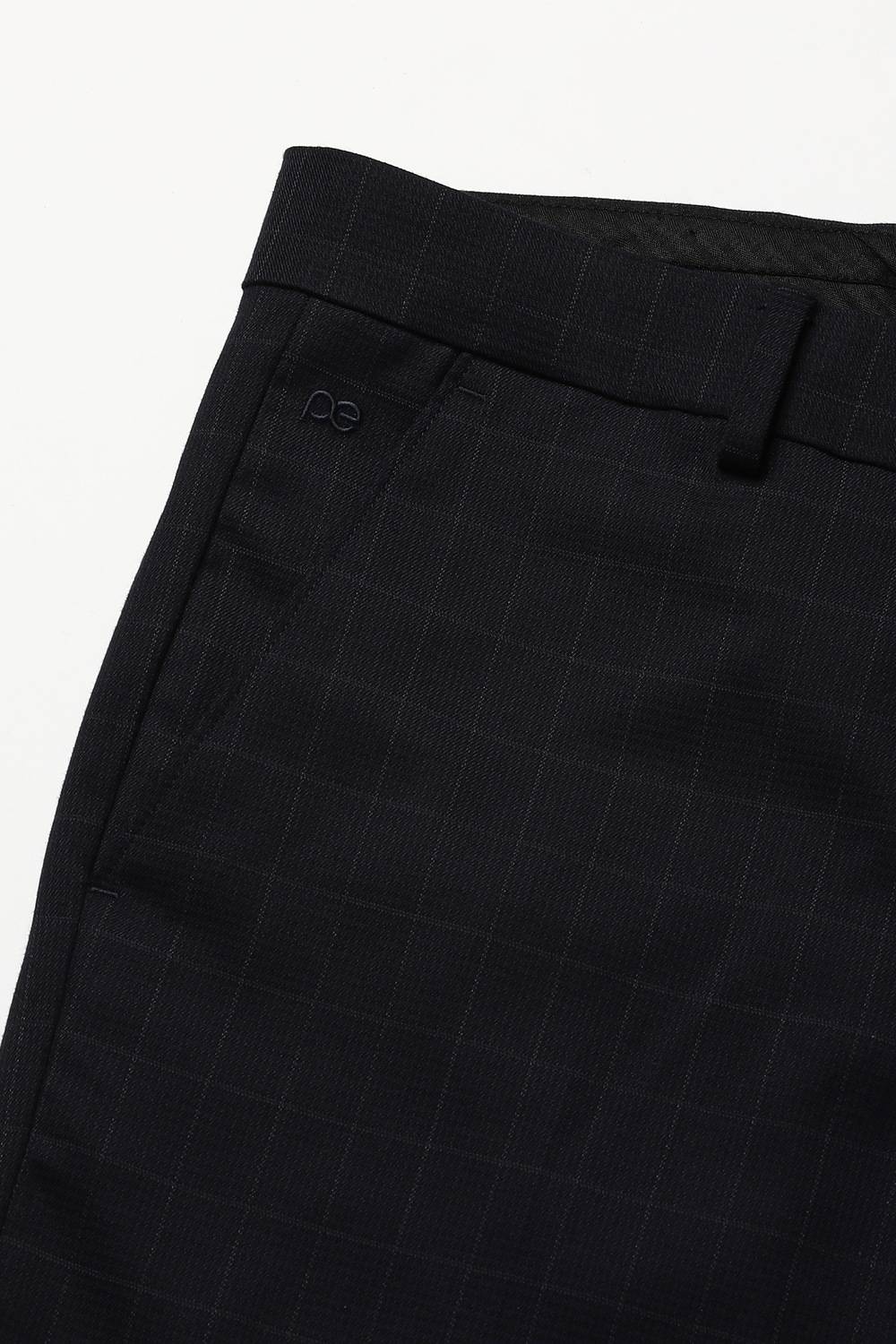 Enhance your formal wardrobe with Peter England's black check formal trousers. Crafted from a blend of polyester, viscose, and spandex, these trousers offer a comfortable fit while ensuring a sophisticated appearance for any formal occasion. The timeless check pattern adds a touch of elegance, making these trousers a versatile choice for stylish dressing. Elevate your look with the perfect fusion of comfort and style that these trousers provide.