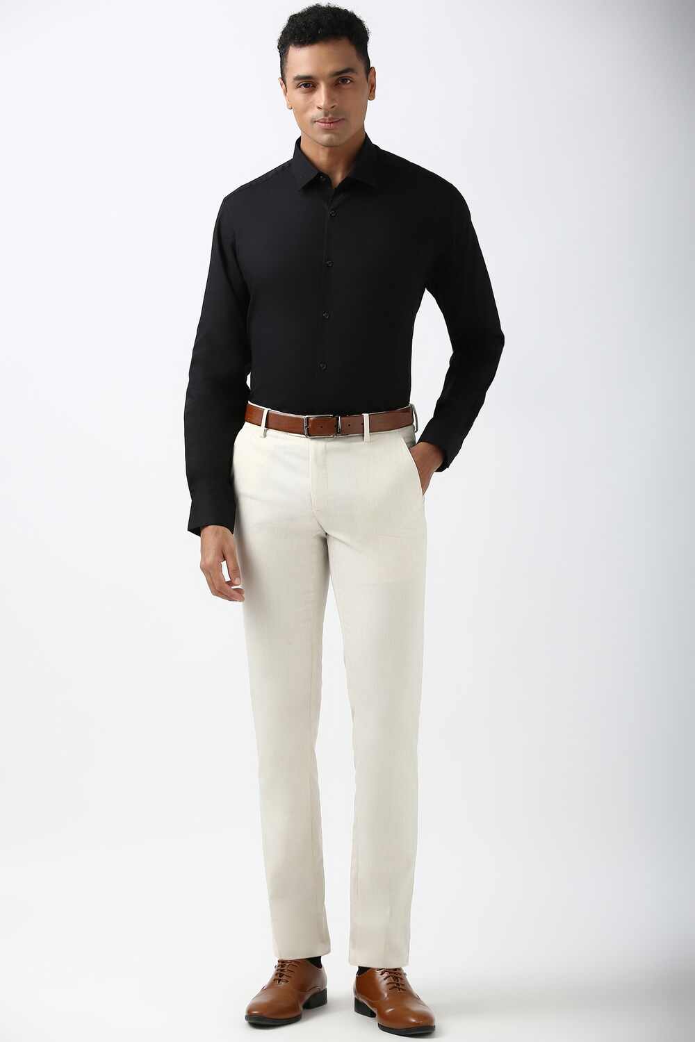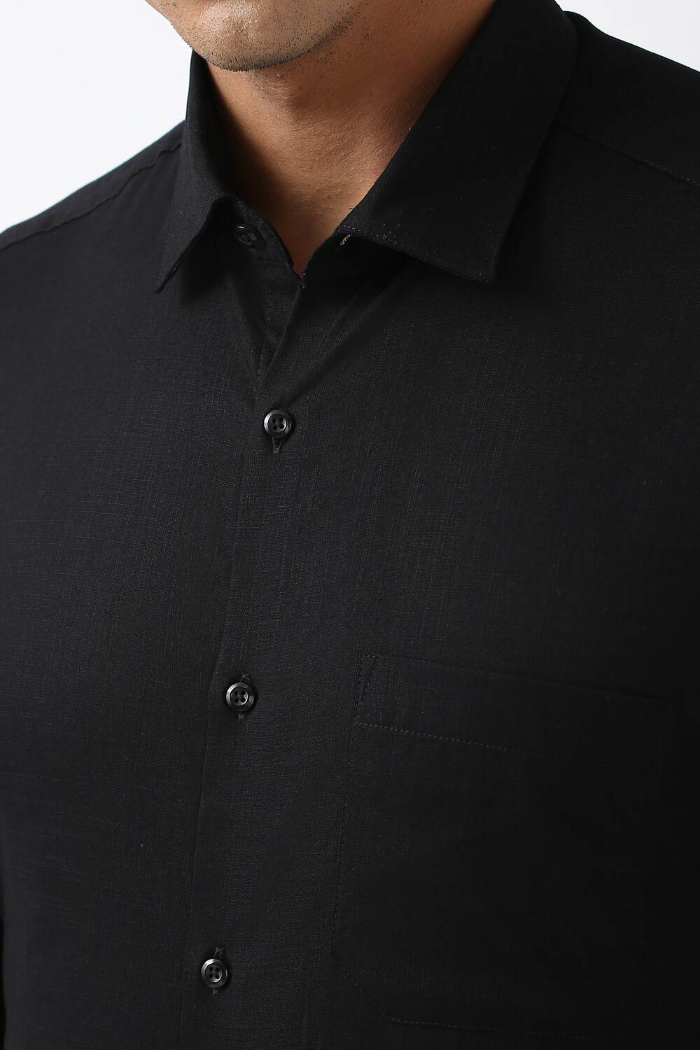 Elevate your formal wardrobe with this Peter England textured black shirt. Crafted from premium cotton, it offers a comfortable regular fit that seamlessly blends sophistication and style. With full sleeves, this shirt is perfect for office meetings or formal events. Its unique textured design adds a touch of elegance, making it a versatile choice for the discerning gentleman. Experience the perfect balance of comfort and refined style today.