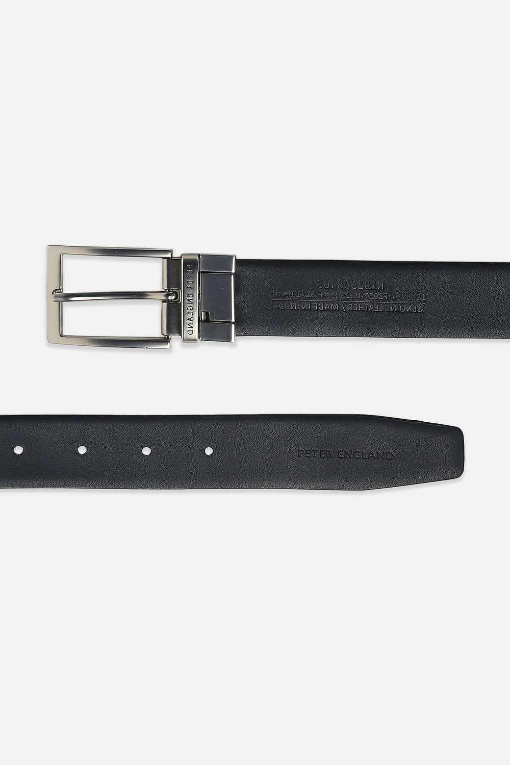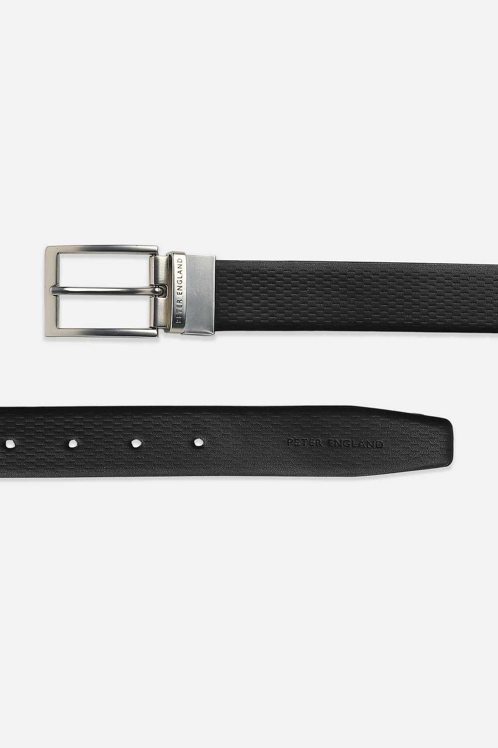 Elevate your formal attire with this Peter England black textured leather belt. Crafted from high-quality leather, it offers a perfect blend of durability and sophistication. Its sleek design seamlessly complements formal wear, making it an essential accessory for today`s modern man. With its impeccable craftsmanship, this belt not only defines your waistline but also enhances your overall look. Experience the perfect finishing touch to your ensemble that transforms ordinary into extraordinary.