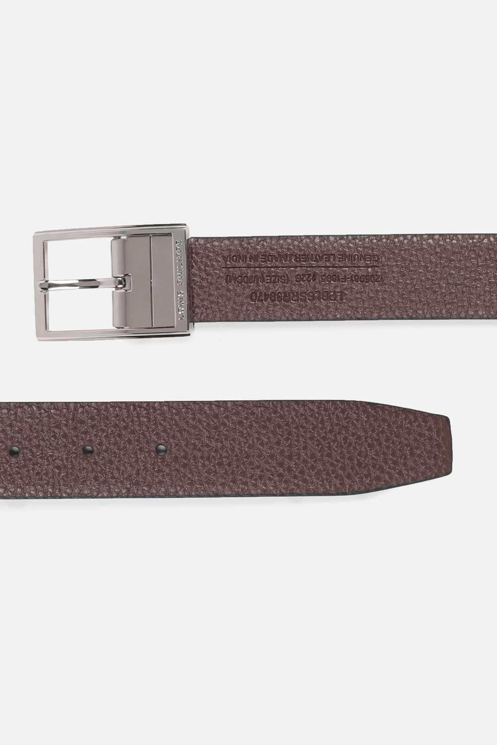 Indulge in timeless sophistication with this black textured leather belt from Louis Philippe. Expertly tailored, the refined design adds a distinctive flair to formal attire, ensuring you command attention at every occasion. The supple leather provides durability while maintaining a polished aesthetic. Perfectly complementing tailored trousers or suits, this accessory seamlessly marries style and functionality, making it an essential addition to your refined ensemble. Enhance your look with this epitome of luxury.