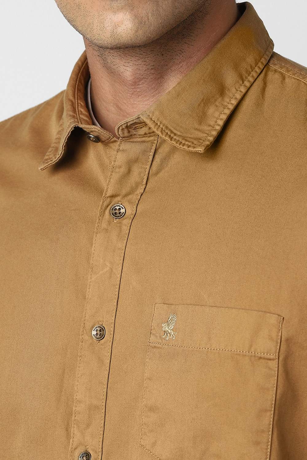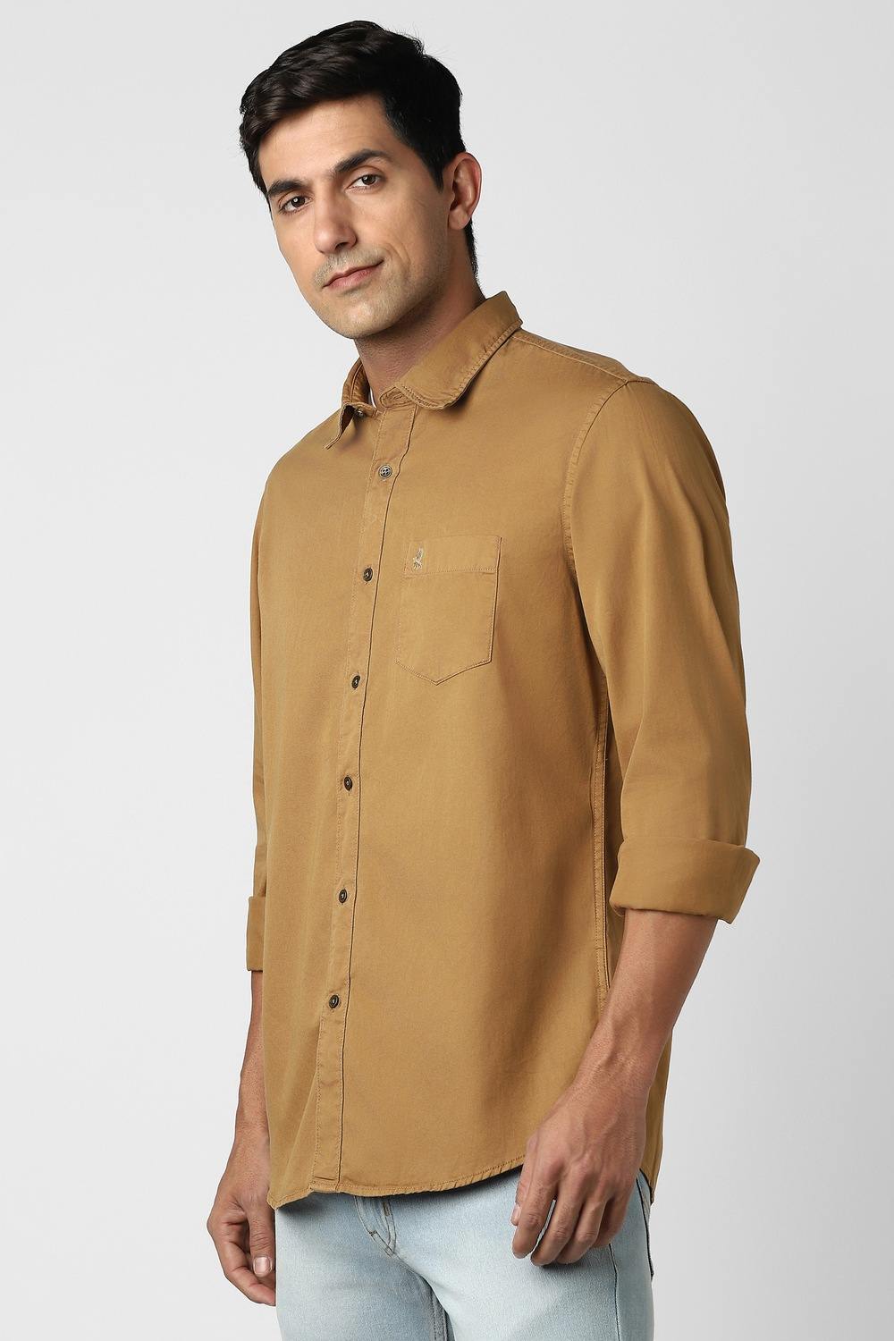 Introducing the Peter England full sleeves casual shirt in a rich brown hue. Crafted from soft cotton, this shirt prioritizes comfort while ensuring breathability for all-day wear. Its solid pattern provides a versatile look, perfect for relaxed outings. Designed for the modern man, this shirt effortlessly combines style and functionality, making it an essential addition to your wardrobe. Elevate your casual look with this timeless piece.