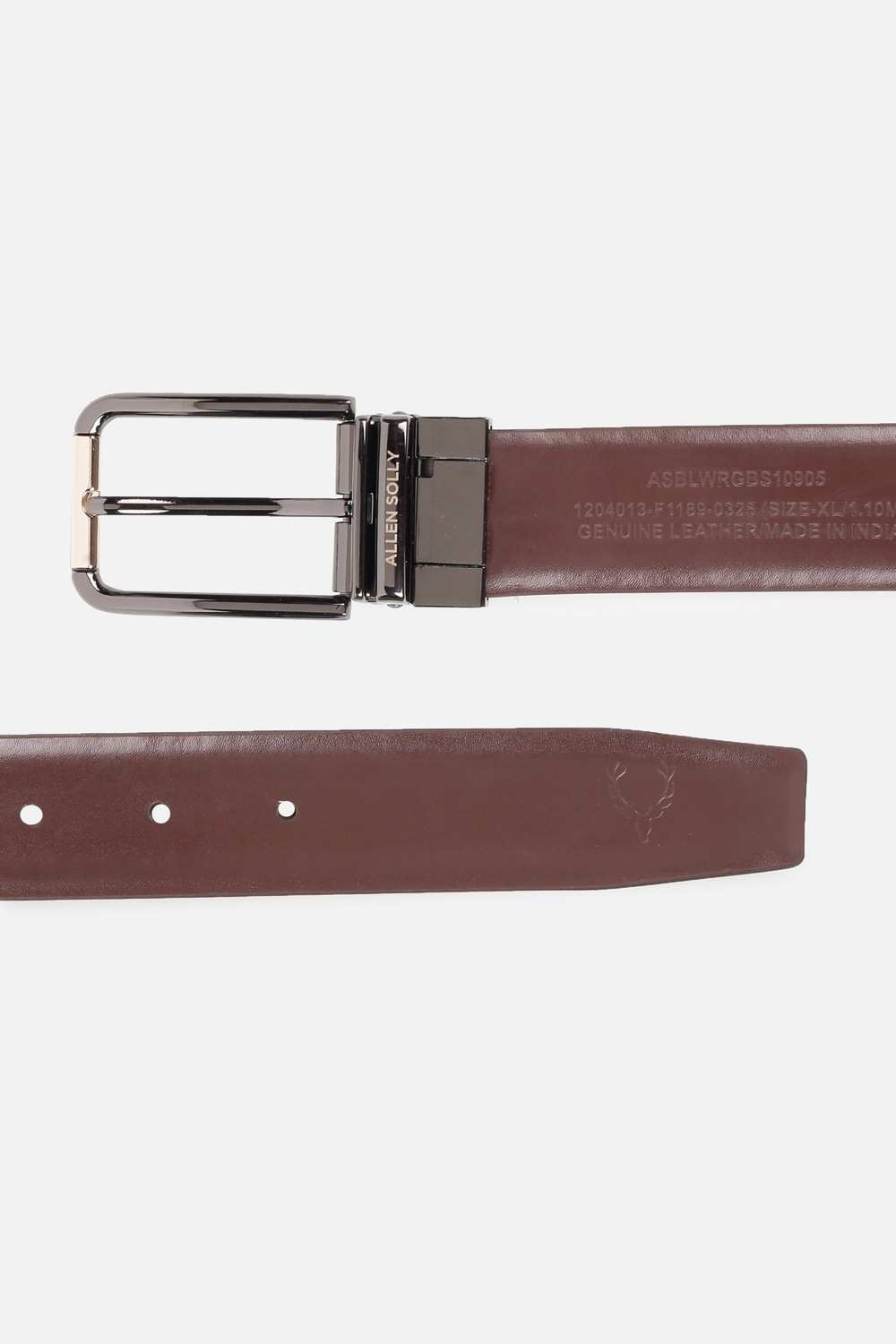 Elevate your formal attire with the Allen Solly brown leather belt. Crafted from high-quality leather, this solid accessory seamlessly enhances any outfit with its sophisticated and timeless appeal. Designed for versatility, it pairs beautifully with both tailored suits and business casual ensembles. Complete your look with this essential piece that combines elegance with functionality, making it a perfect addition to your wardrobe.