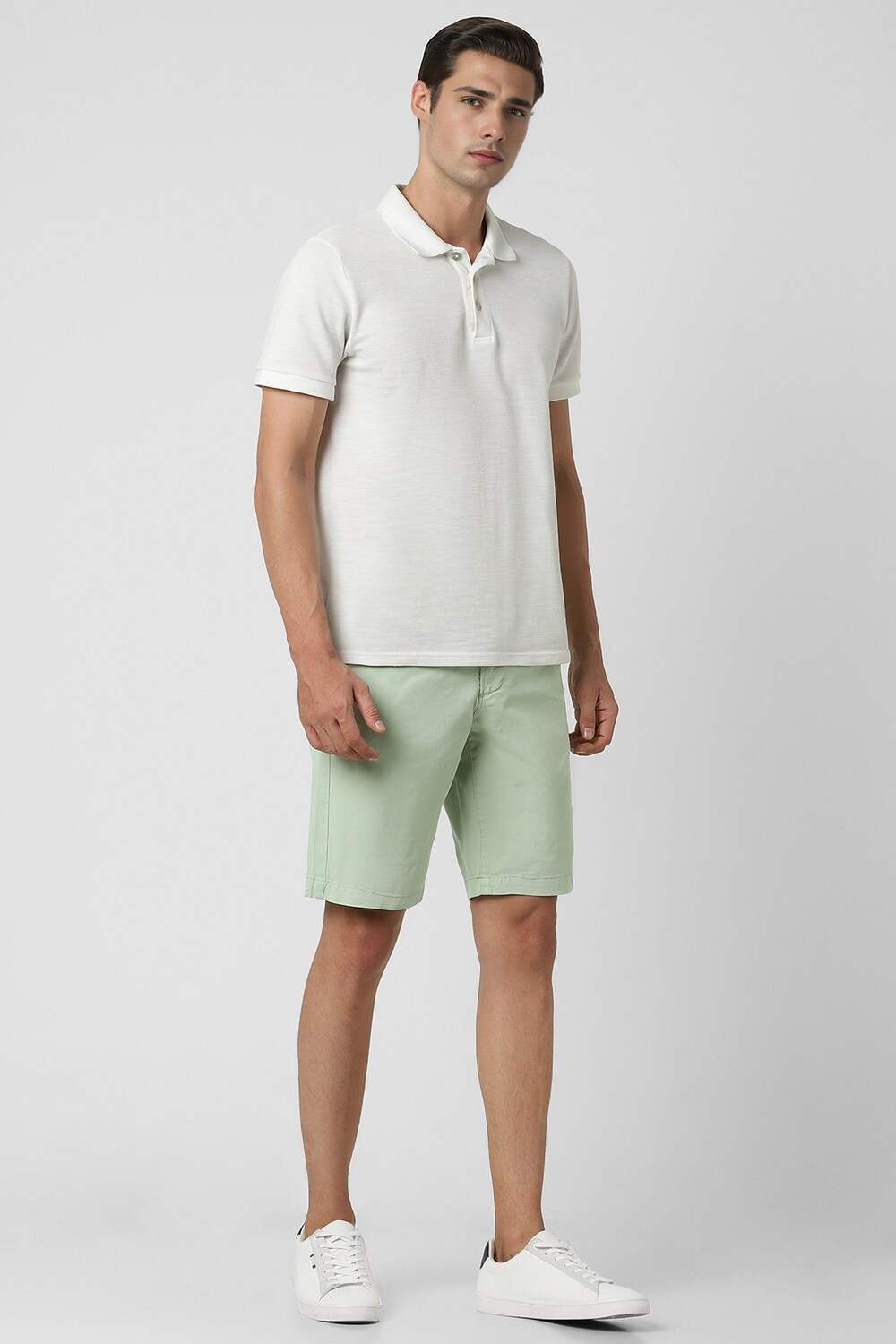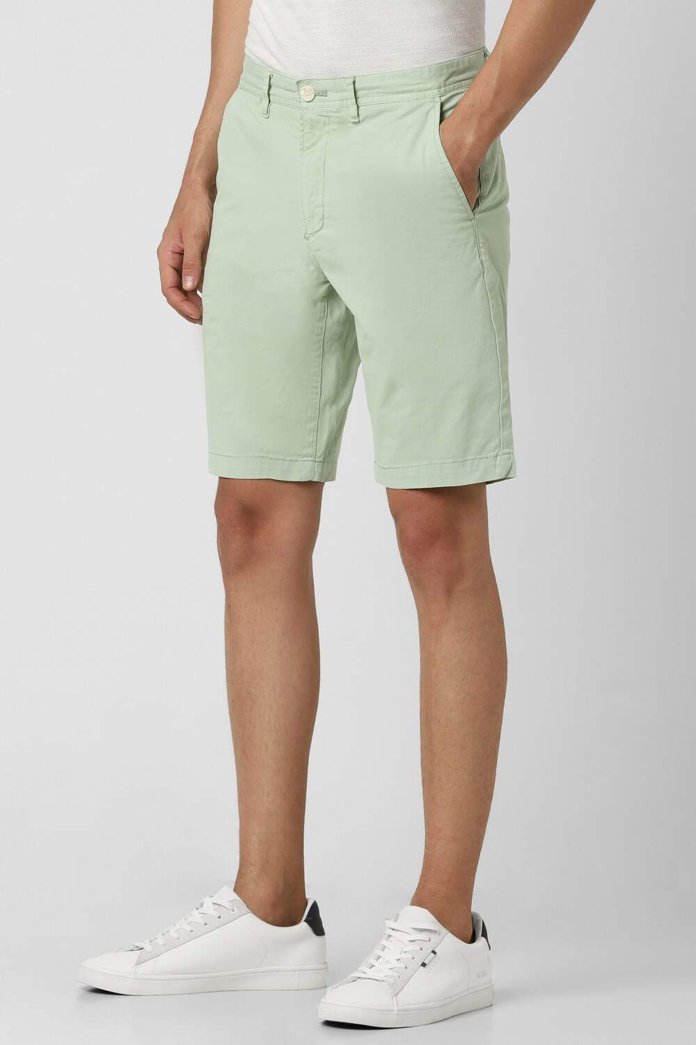 Crafted for comfort and style, these Peter England Casuals shorts feature a solid green design perfect for relaxed outings. The blend of cotton and spandex ensures a comfortable fit that moves with you. With a regular fit cut, these shorts are ideal for casual occasions, providing a versatile addition to your wardrobe. Embrace effortless style with these shorts, designed to keep you looking sharp and feeling great.
